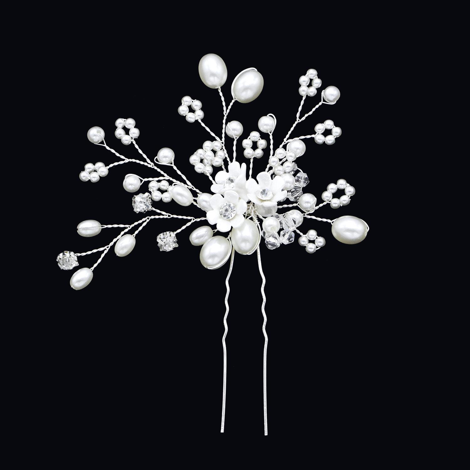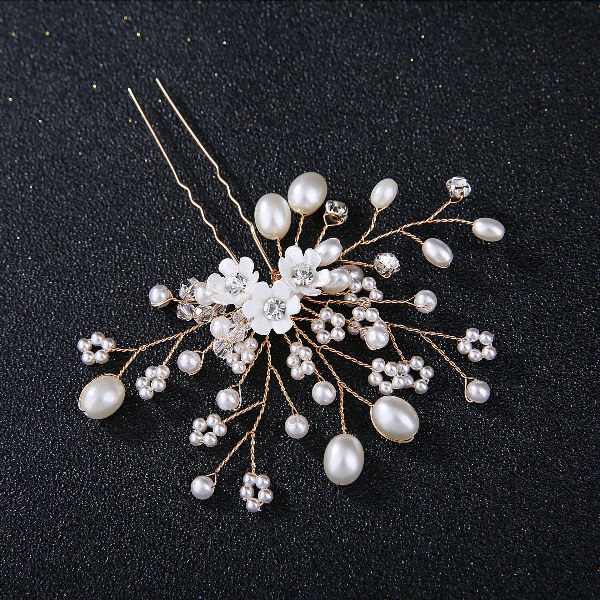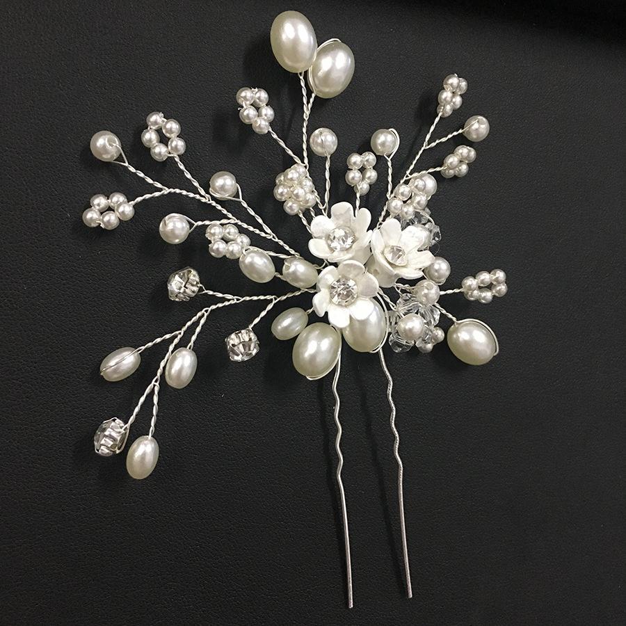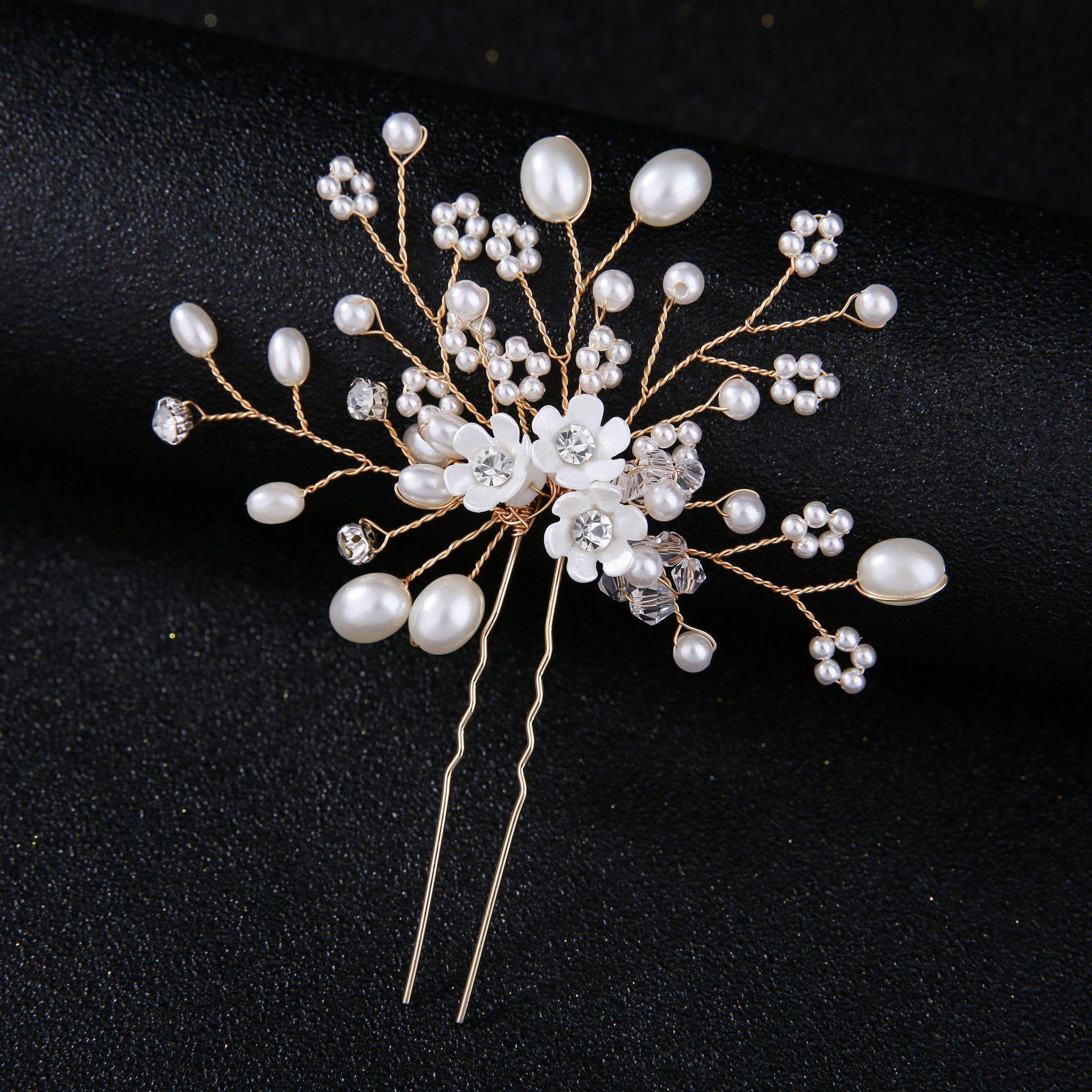 Joyería nupcial tocado Europa y Estados Unidos transfronterizo hecho a mano horquilla de perlas pedrería cuentas de arroz accesorios para el cabello accesorios de boda venta al por mayor