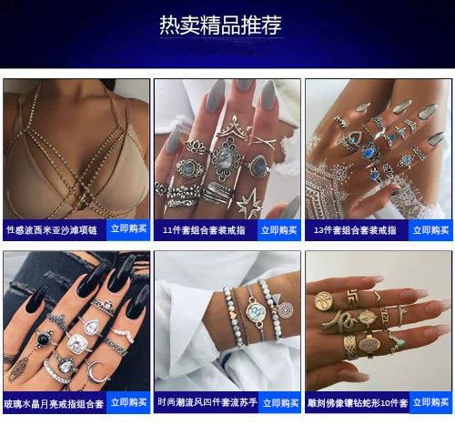 Juego de 10 anillos con forma de serpiente de diamante y estatua de Buda tallada exagerada con personalidad de moda europea y americana de gran venta