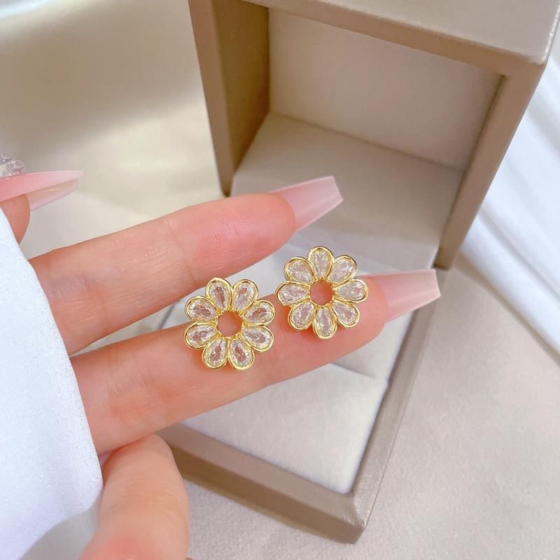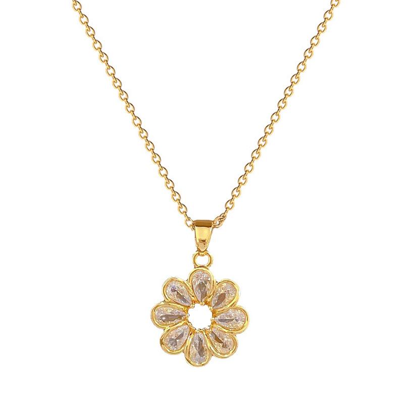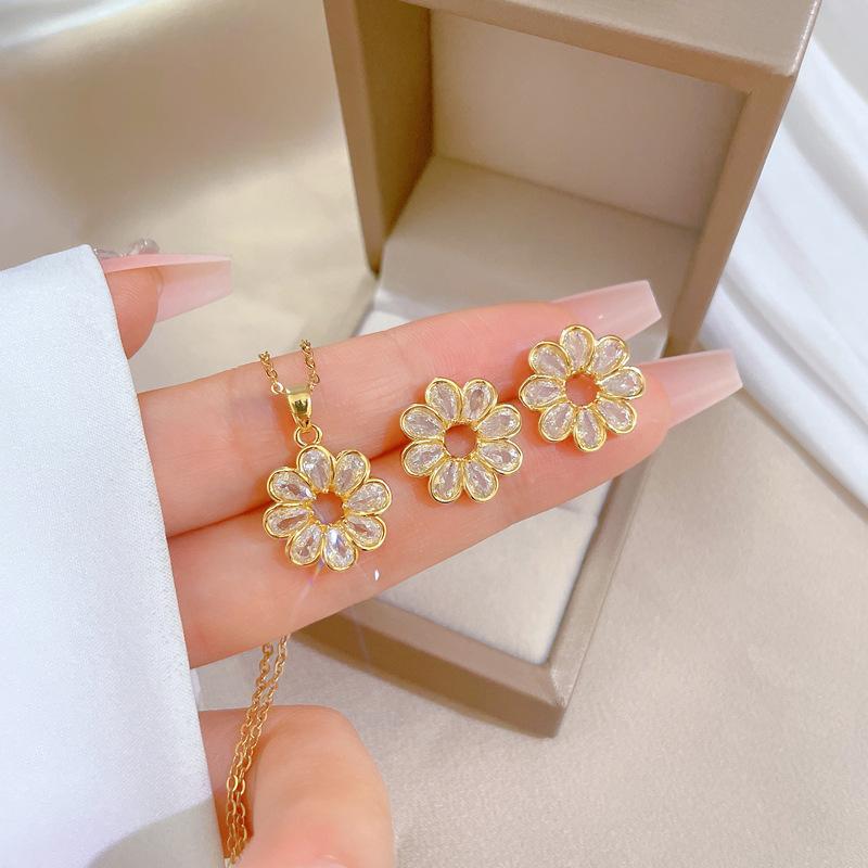 [Acero de Titanio] Set de Collar y Aretes Lujo Ligero Diamantes Redondos Flores Personalizado Temperamento Banquete Set de Collar y Aretes
