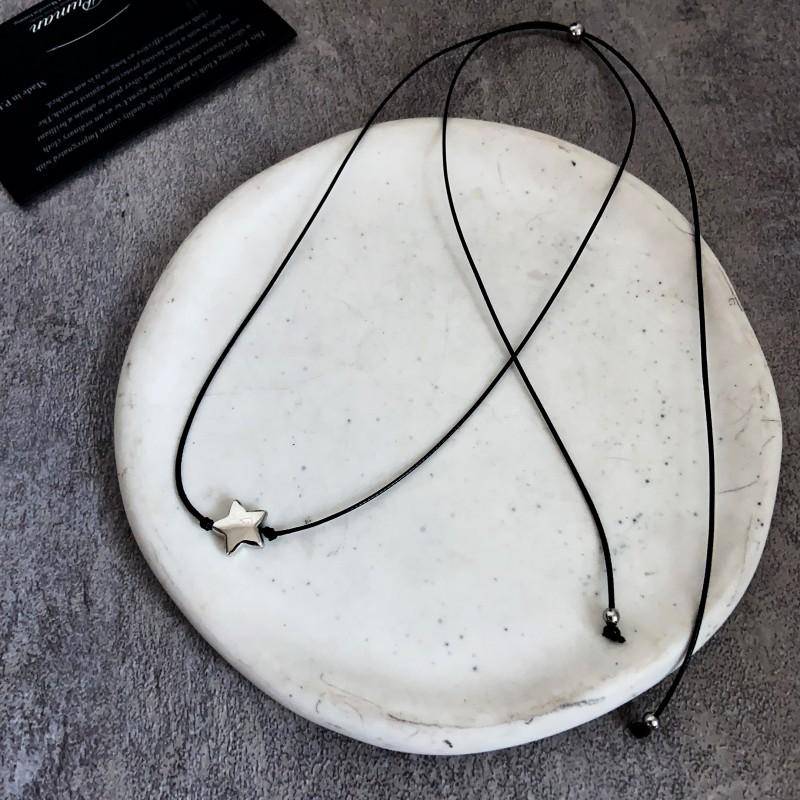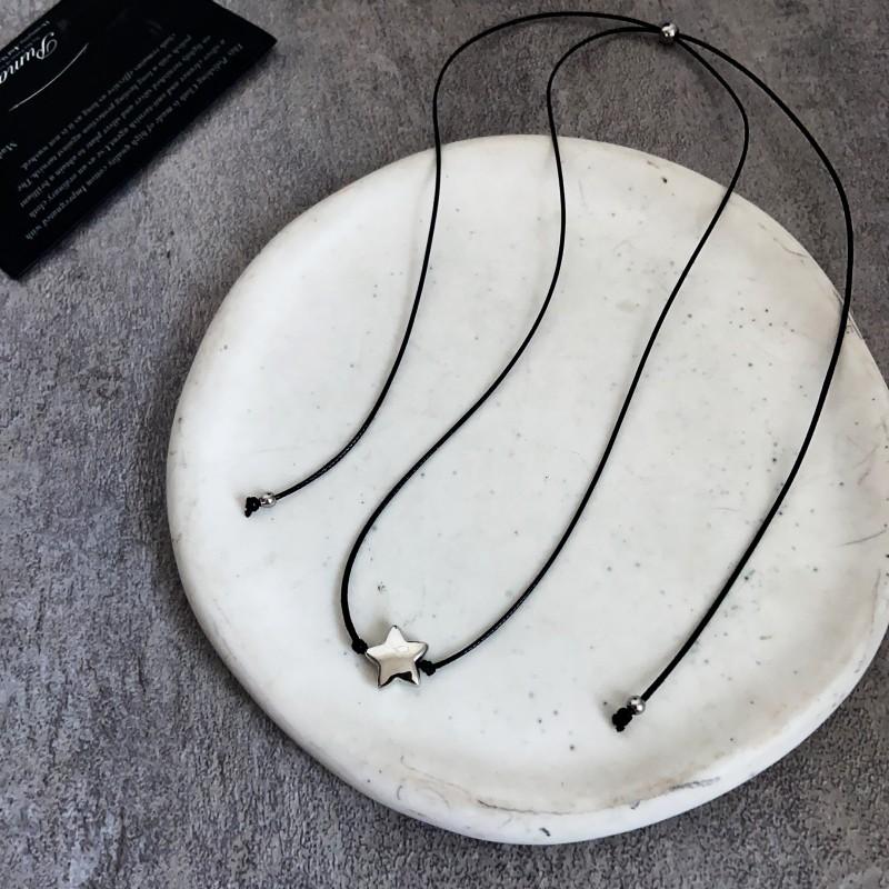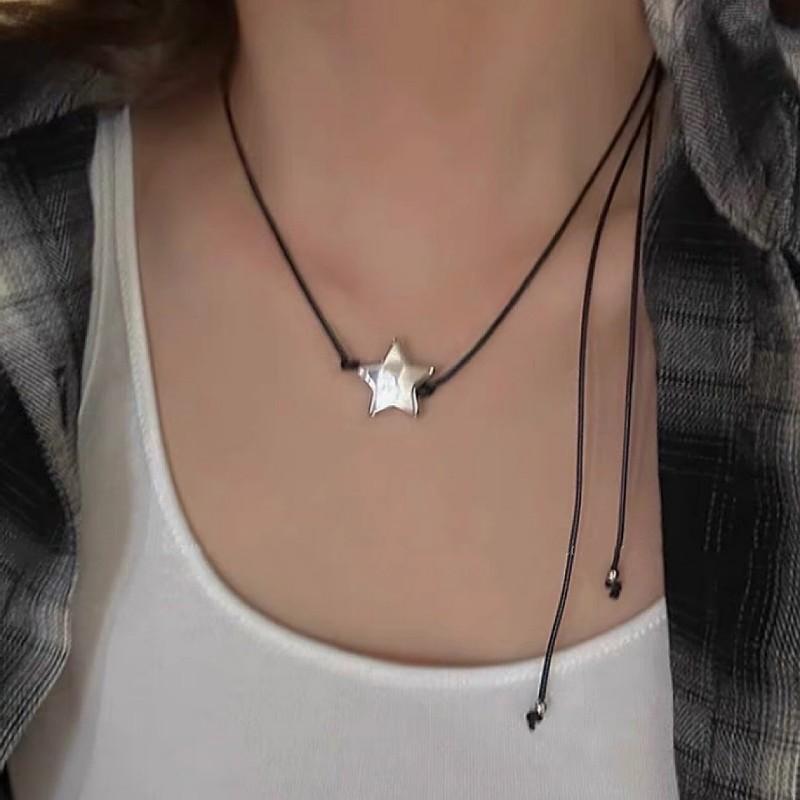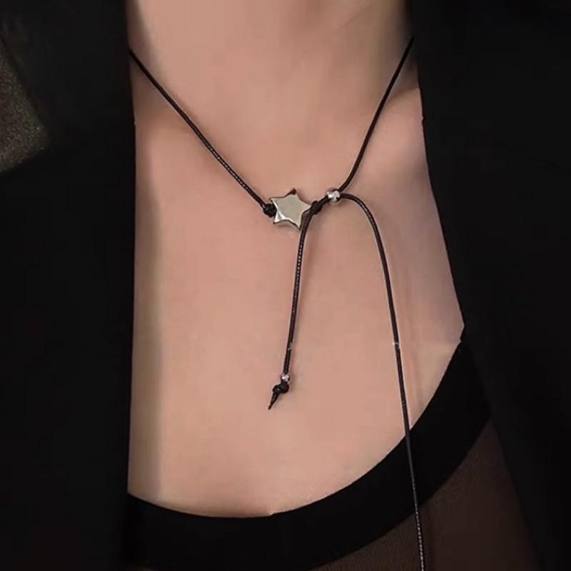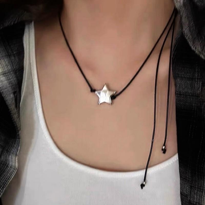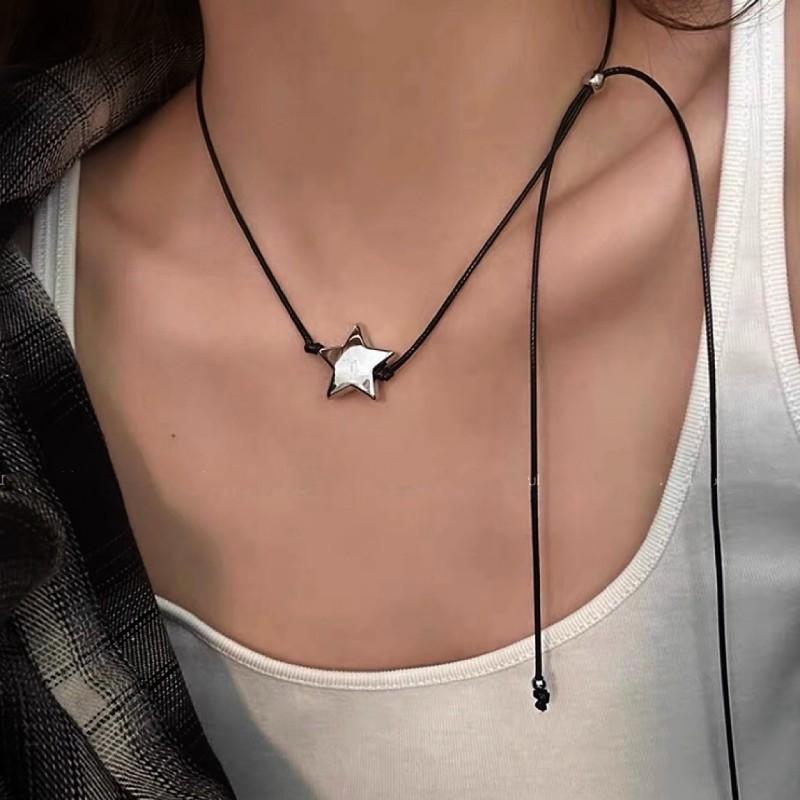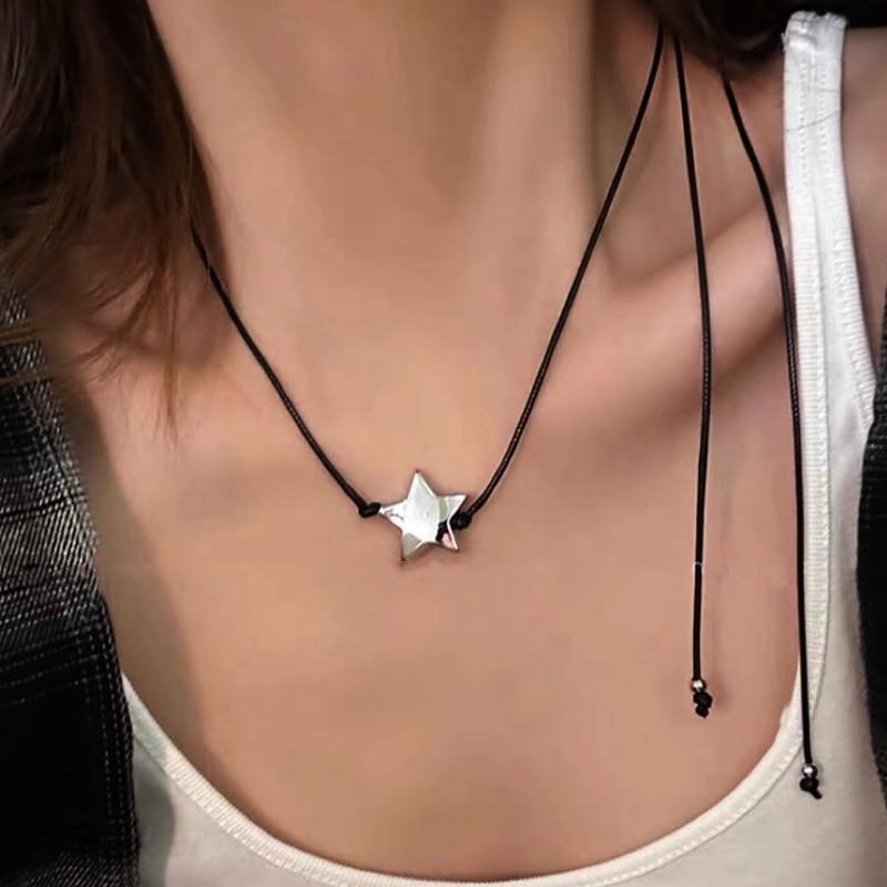 Moda minimalista estrella de cinco puntas negra cadena clavícula con cordón europeo y americano celebridad de internet elegante collar con diseño de tirón