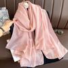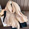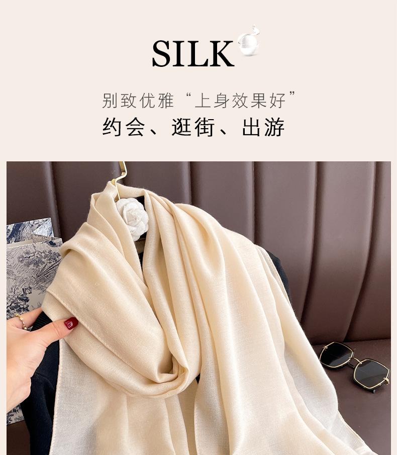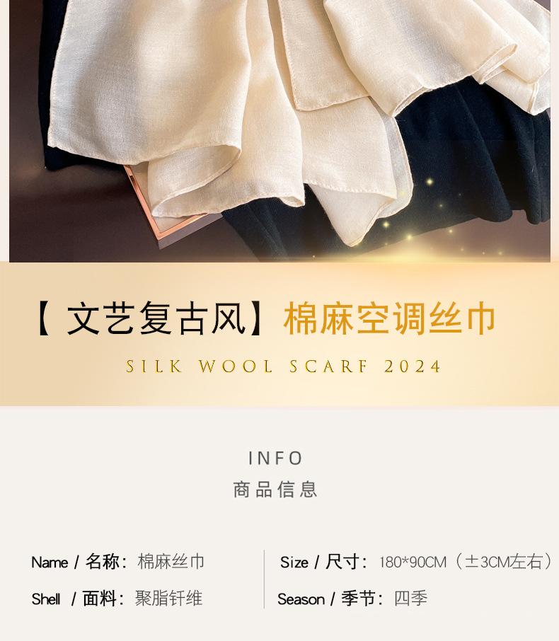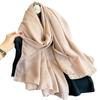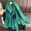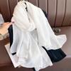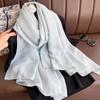 Bufanda de seda blanca de estilo japonés, bufanda de algodón y lino para mujer, de verano, de color liso, de lino, para primavera, otoño e invierno, larga, fina, artística, de doble uso.