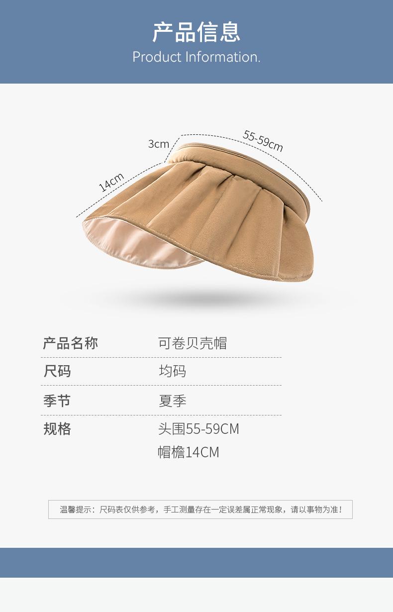 Sombrero Plegable de Concha Sombrero Parasol Resistente a los Rayos UV Enrollable de Ala Ancha Moda de Verano para Mujer Sombrero Parasol de Copa Vacía Estilo Coreano