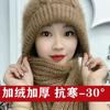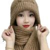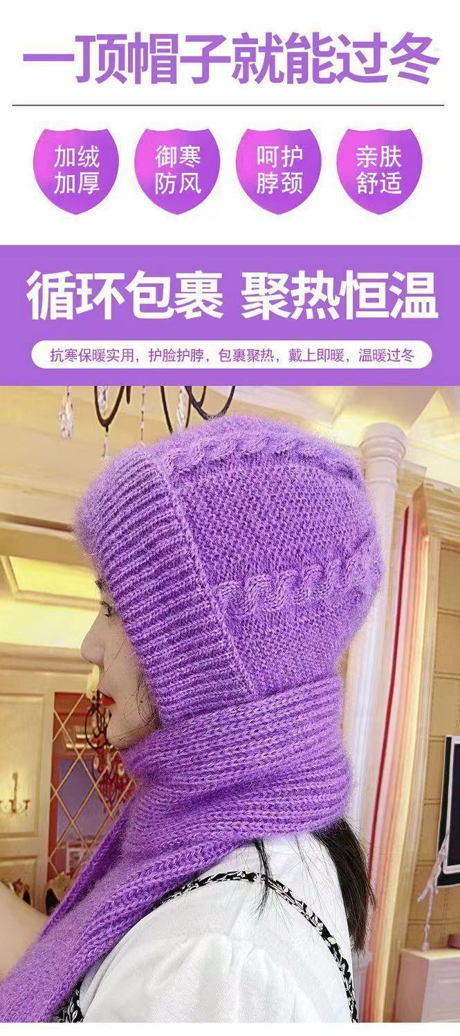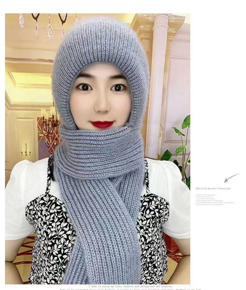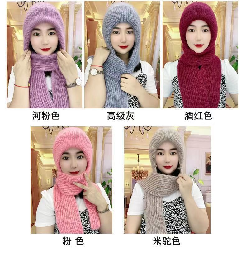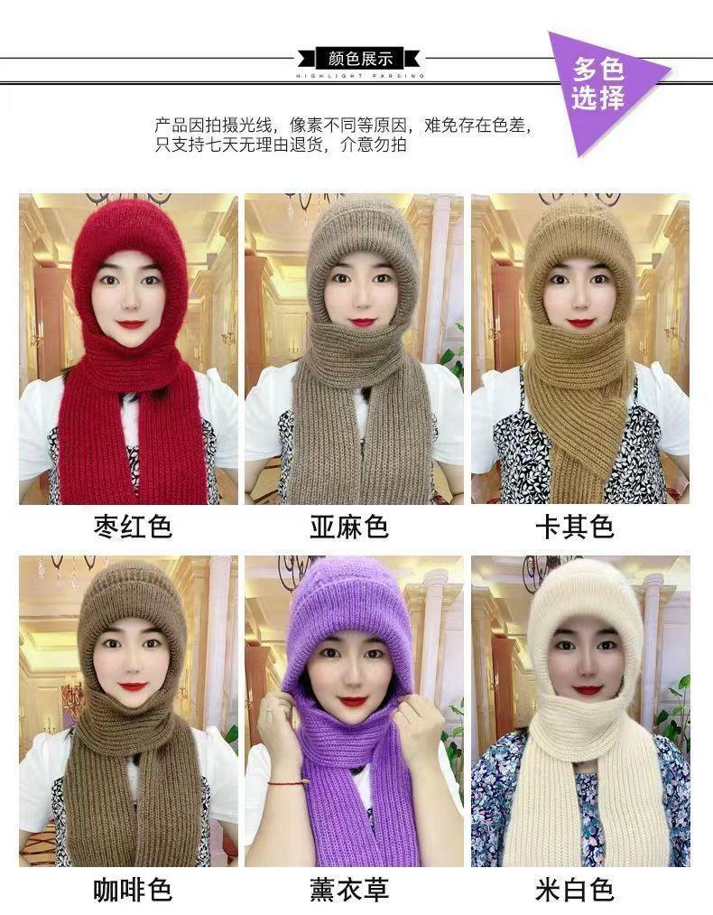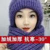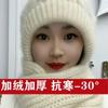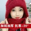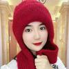Gorro de mujer nuevo de terciopelo grueso con bufanda integrada para la nieve, gorro de lana de terciopelo con ardilla para otoño e invierno, gorro rojo de red cálido.