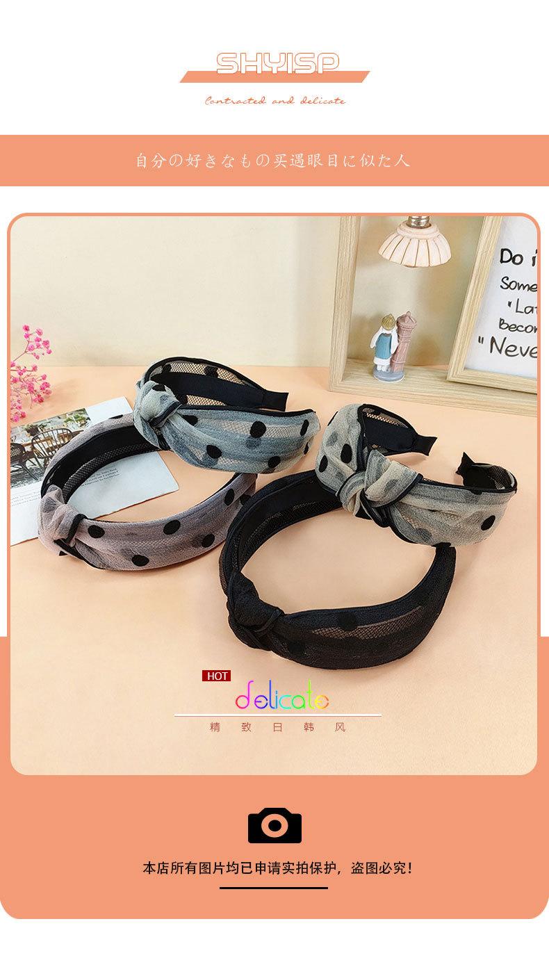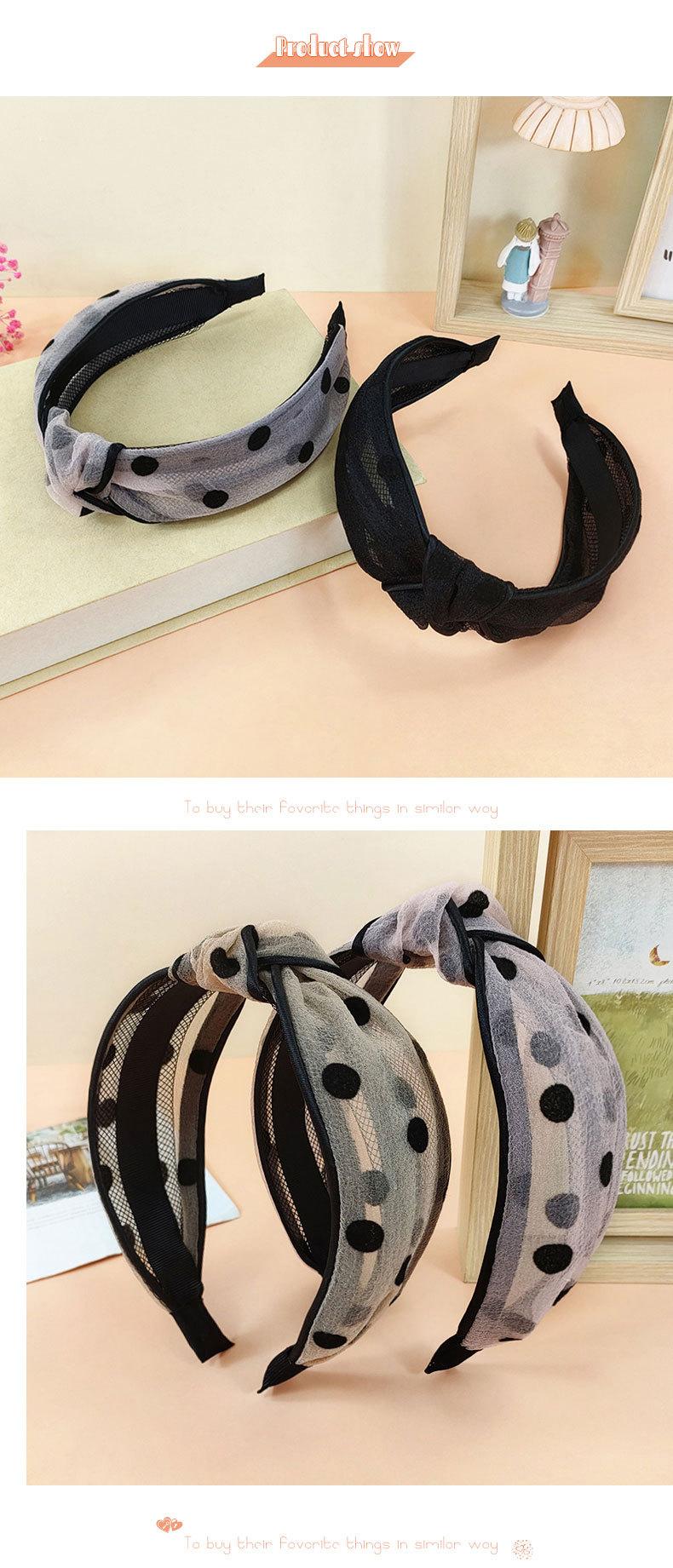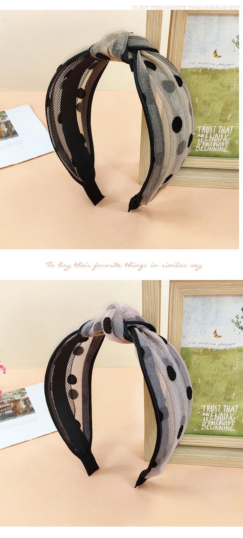Beige Mesh Polka Clip Edge Knot Headband, Light Pink Mesh Poll-Dot Clip-Edge Knot Hairband