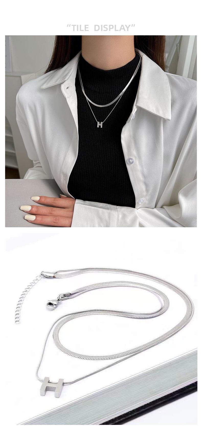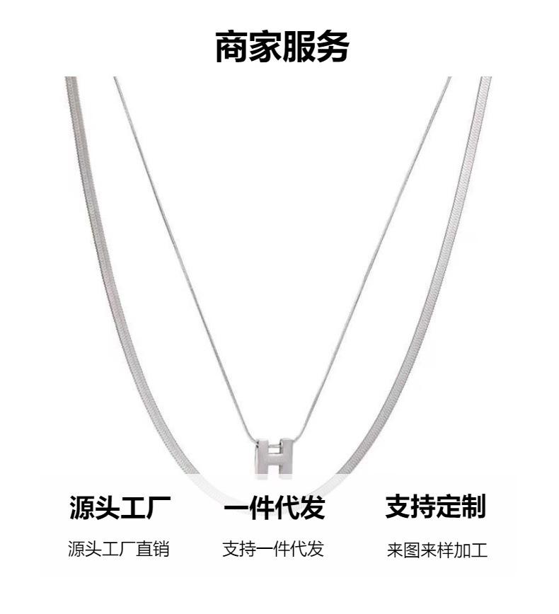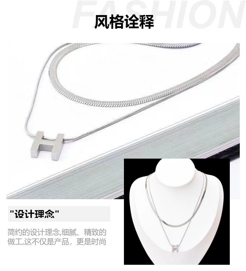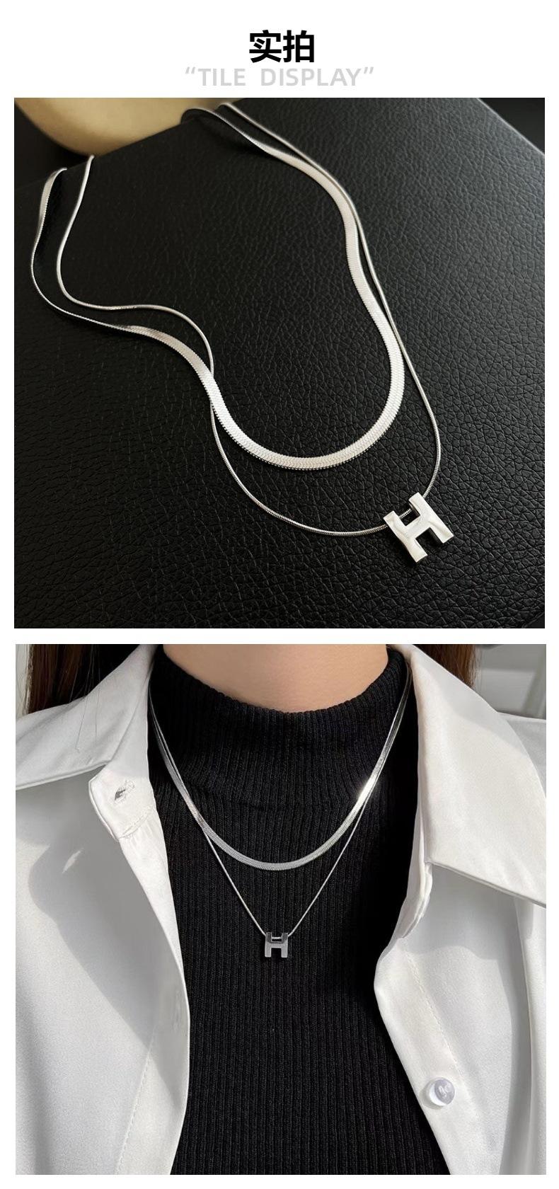 Collar de acero de titanio de doble capa con letra H de metal de alta calidad, cadena de suéter simple de moda, accesorios de collar nuevos personalizados