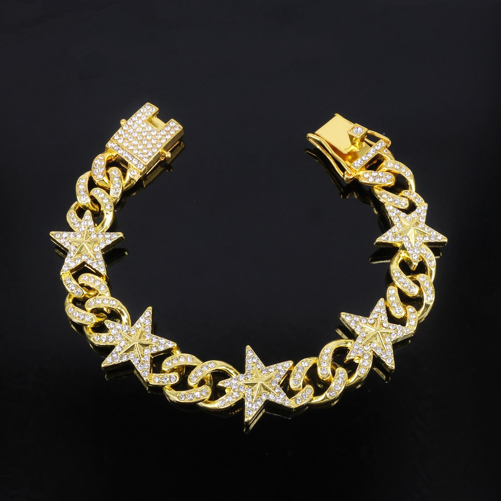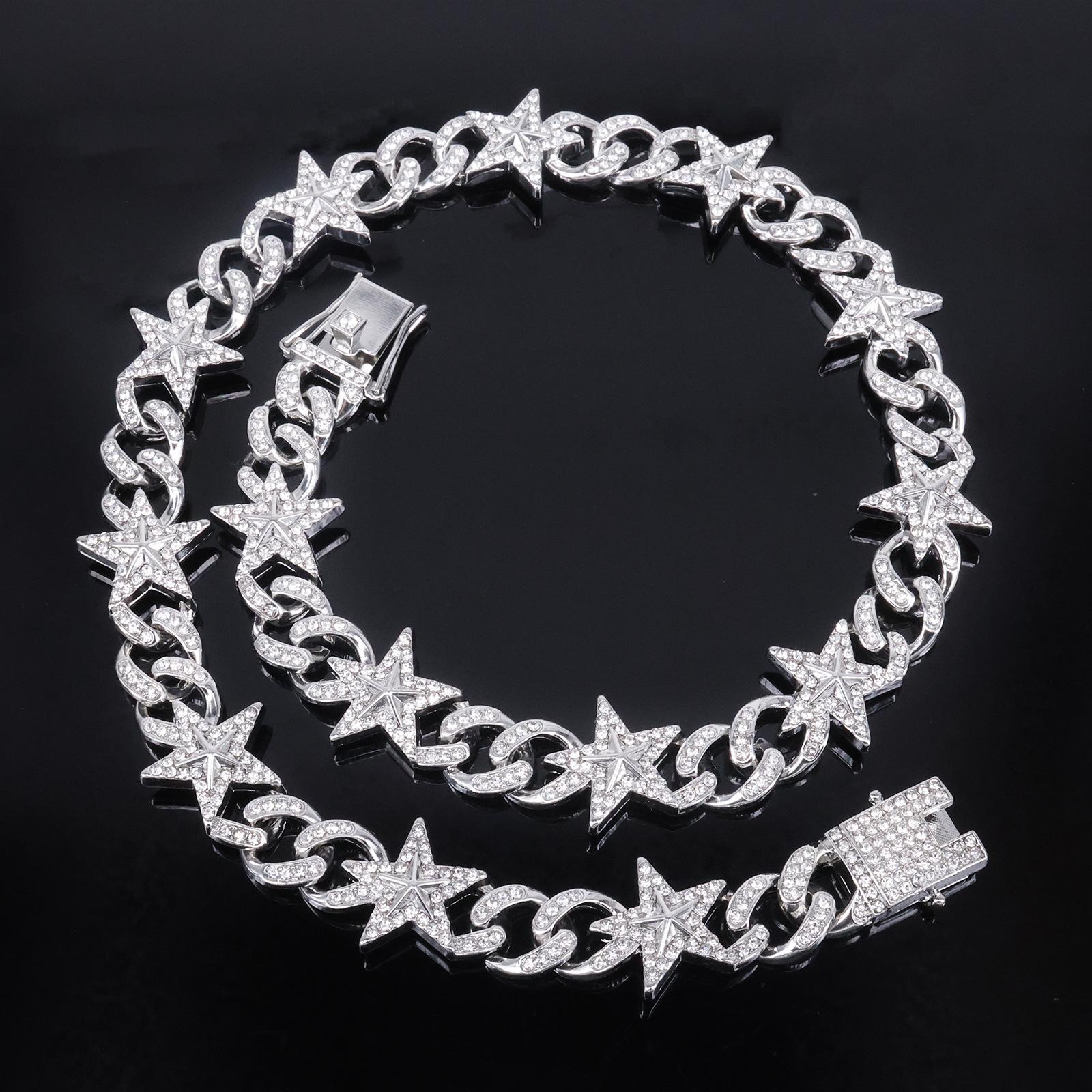 Venta caliente en Europa y Norteamérica: Collar de hombre de aleación de estrella de cinco puntas con diamantes completos, personalidad de alta gama, cadena cubana hip-hop transfronteriza