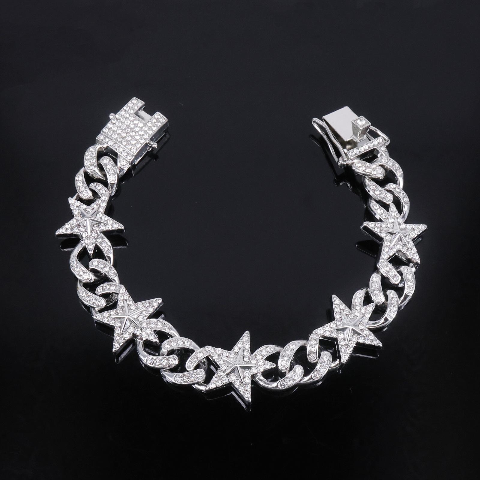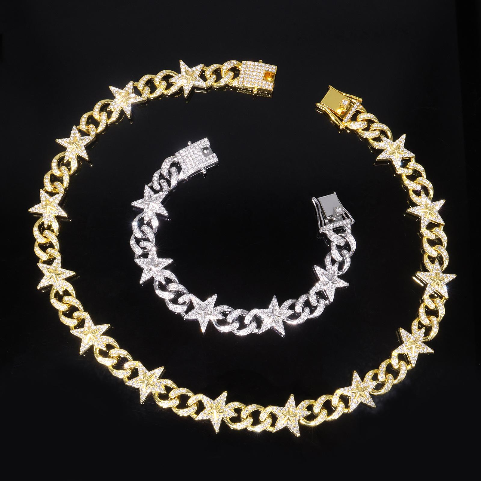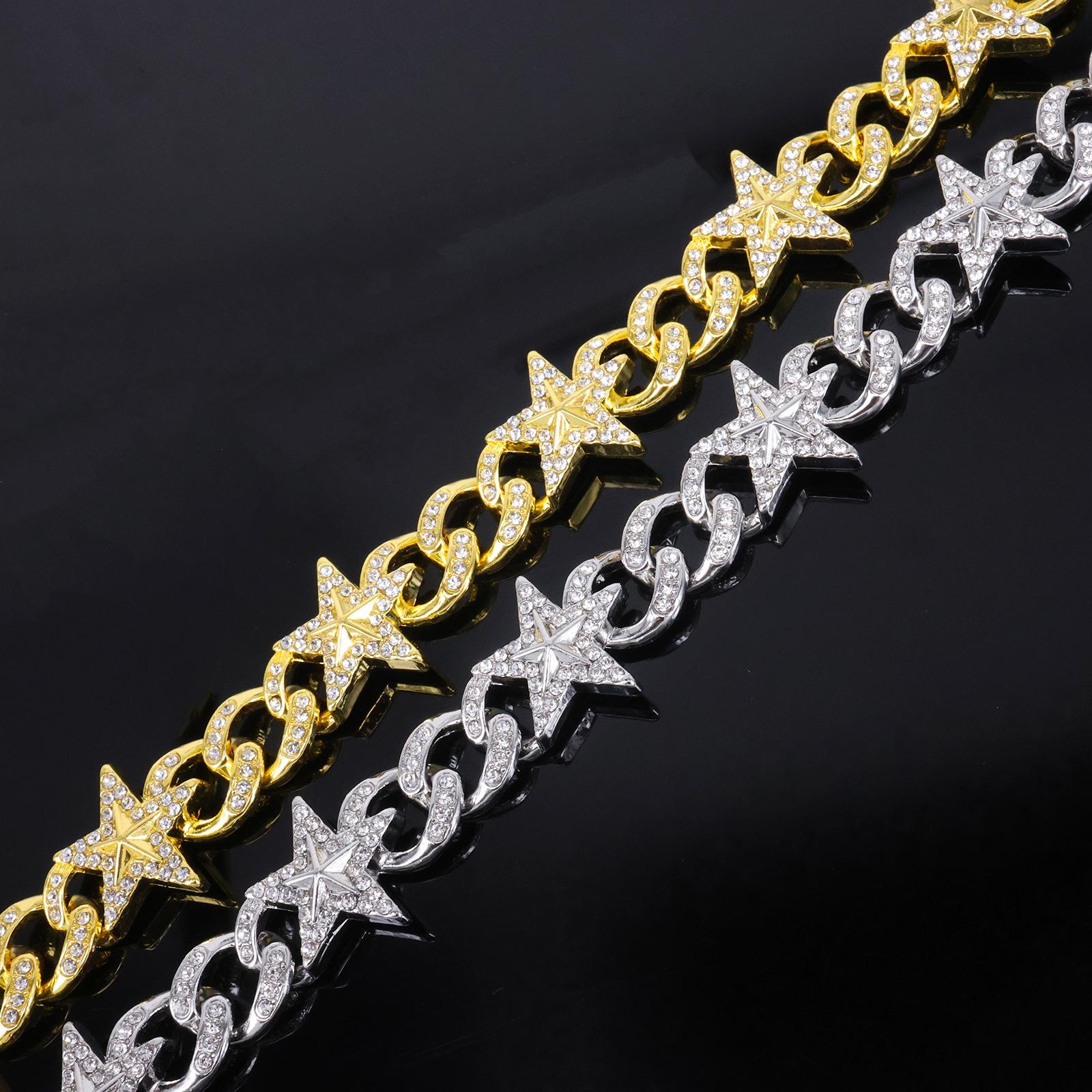 Collar para hombre de aleación de estrella de cinco puntas de diamantes completos de alta gama personalizado transfronterizo hip-hop cadena cubana de venta caliente en Europa y Norteamérica