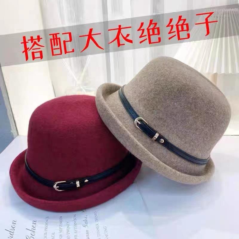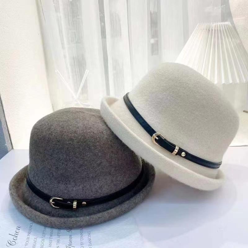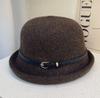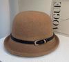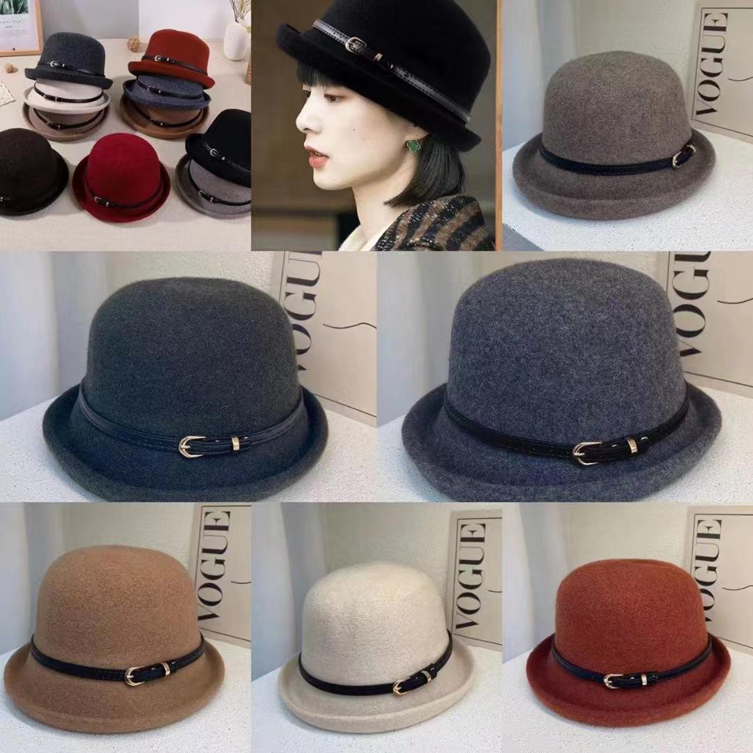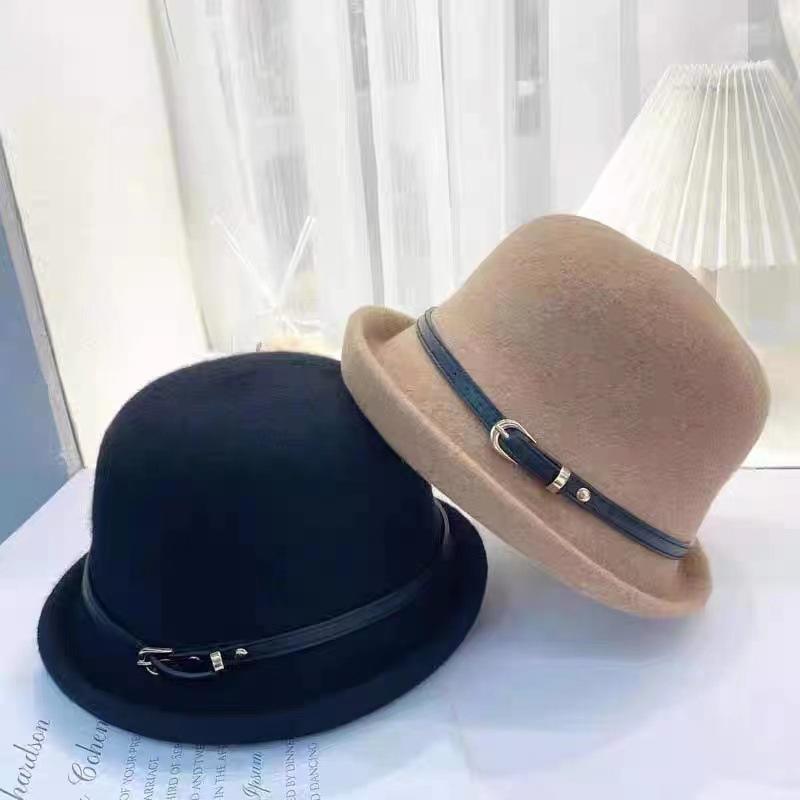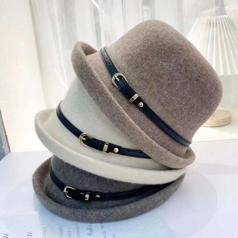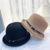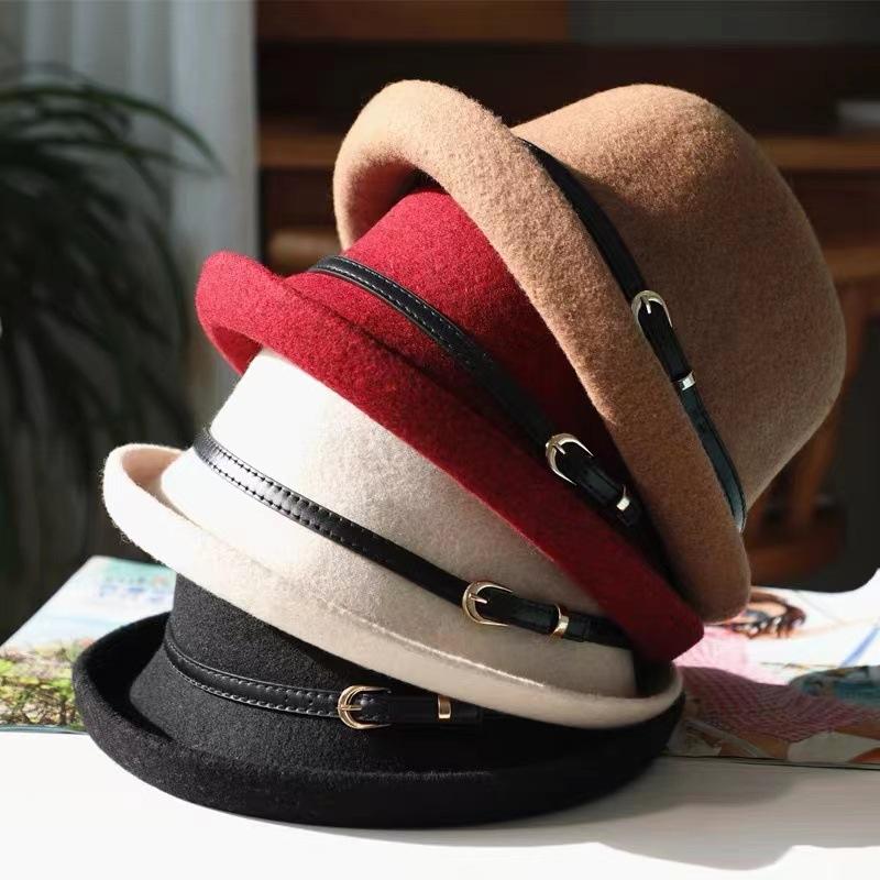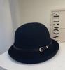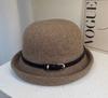 Sombrero de lana con cinturón elegante para mujer, gorro de pescador con cúpula que combina con todo, estilo vintage británico, para otoño e invierno.