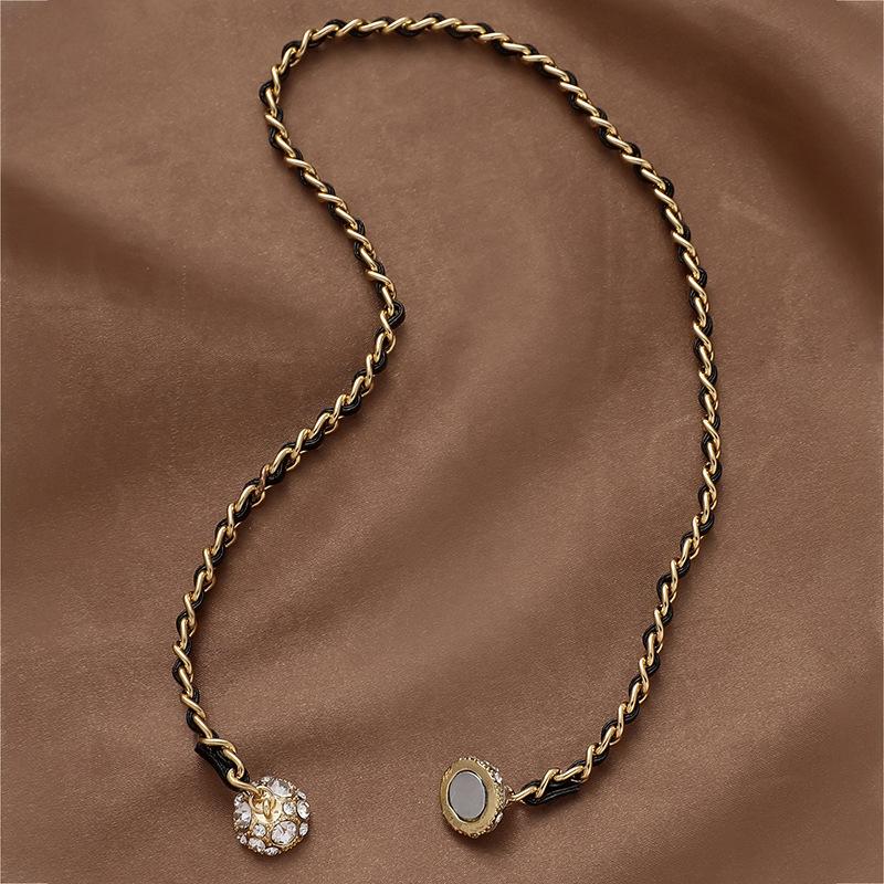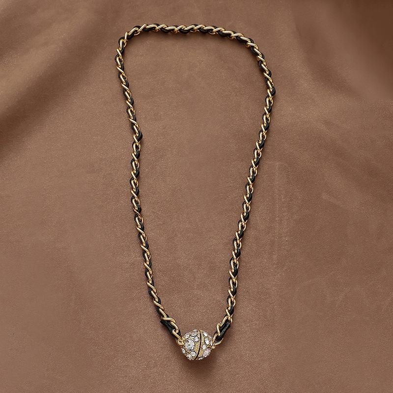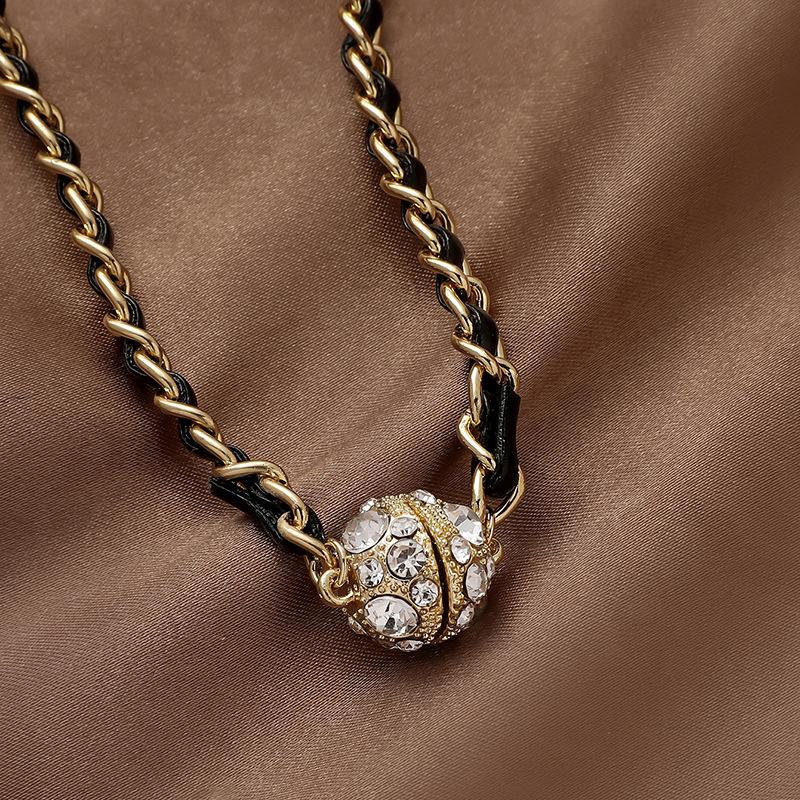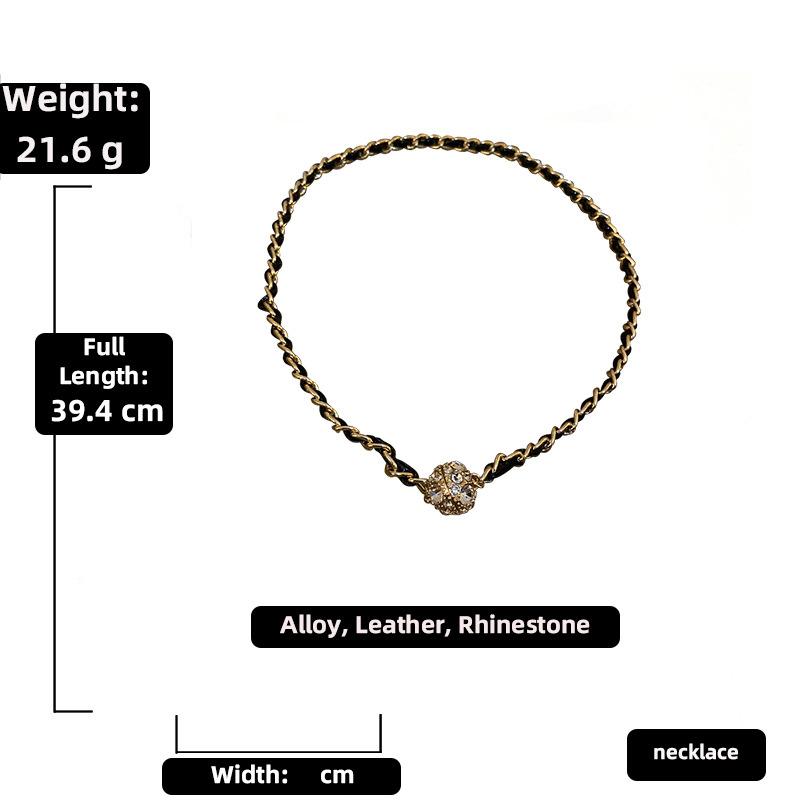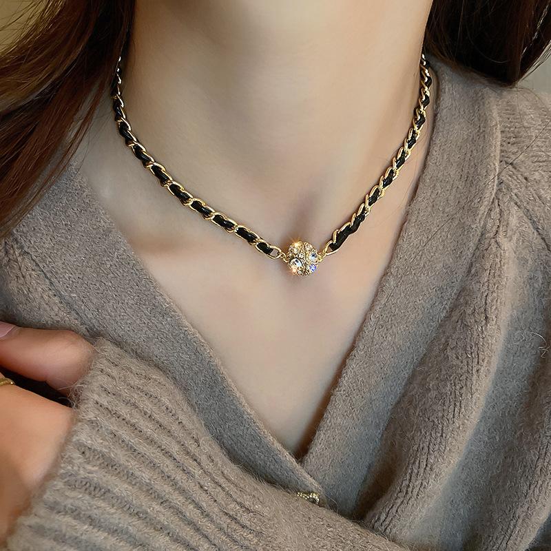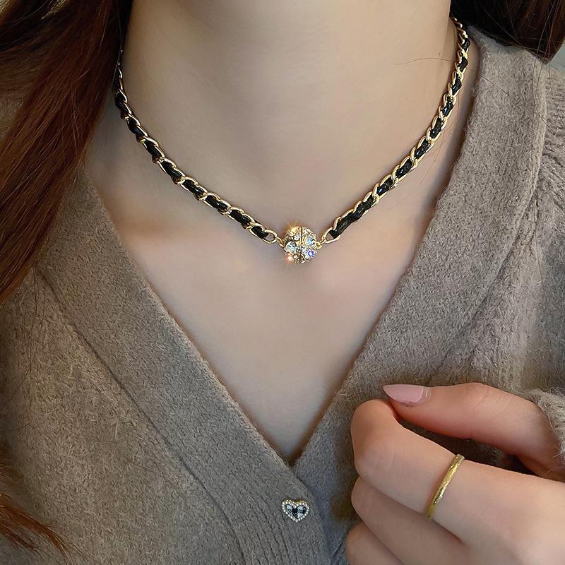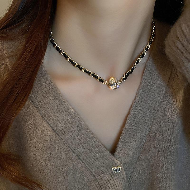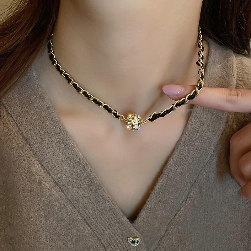 Collar Magnético de Cadena Enrollable de Cuero Negro con Incrustaciones de Diamantes, Elegante Europeo y Americano, Cadena para Clavícula de Moda para Celebridades de Internet para Mujeres