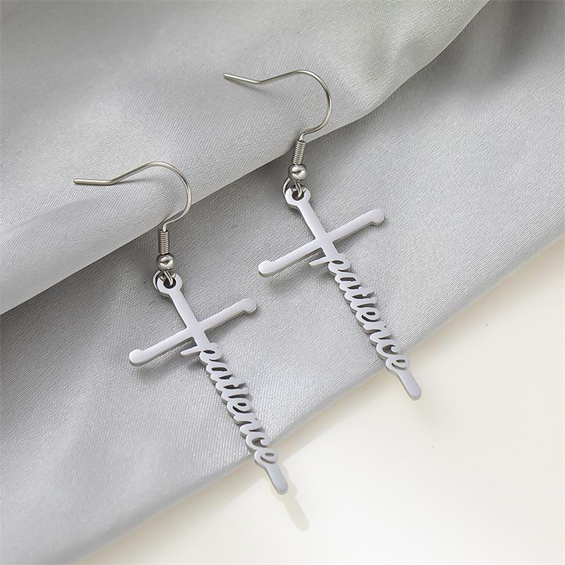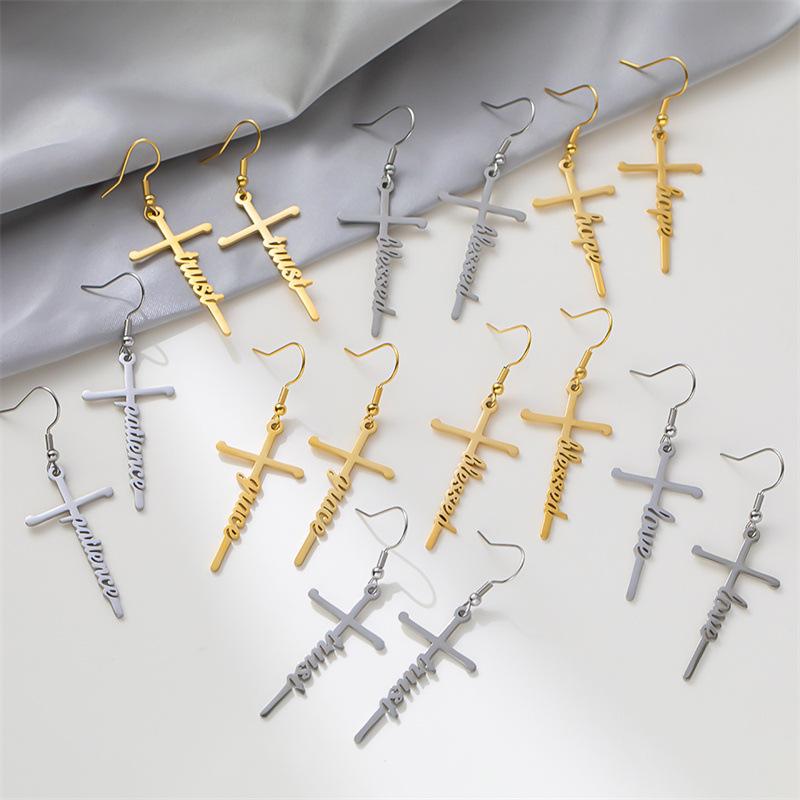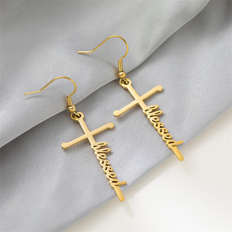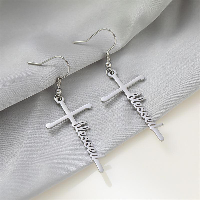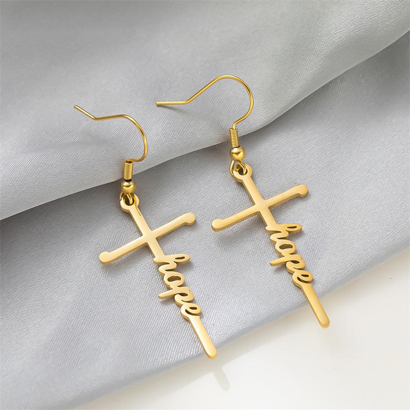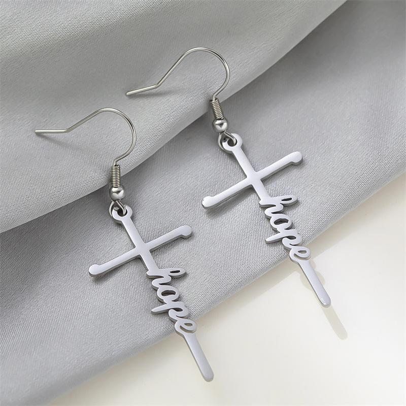 Pendientes de acero de titanio transfronterizos nuevos, pendientes de acero inoxidable con letras inglesas de esperanza bendecida, estilo frío para mujer