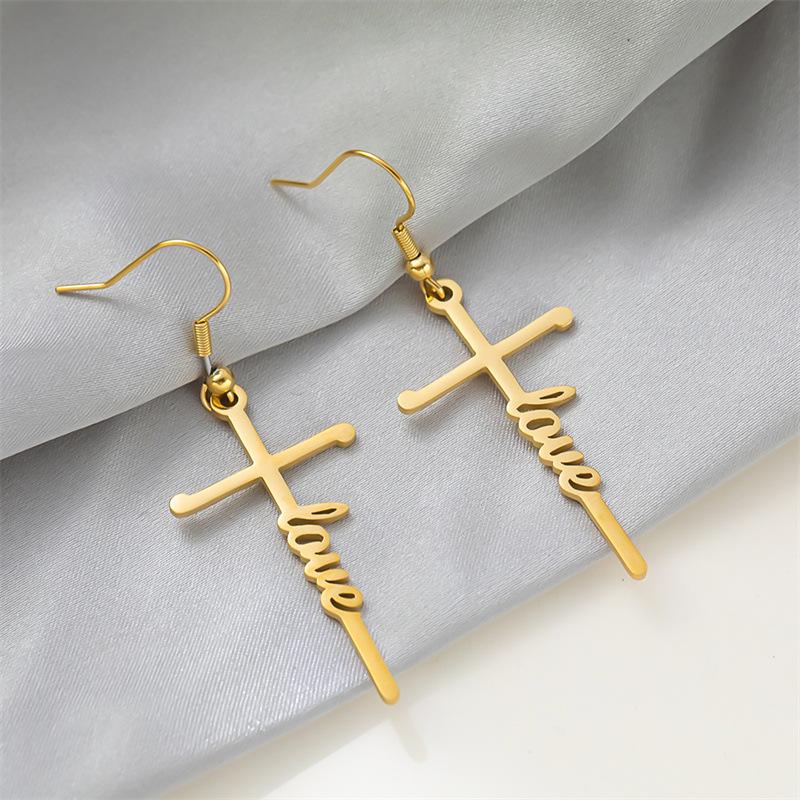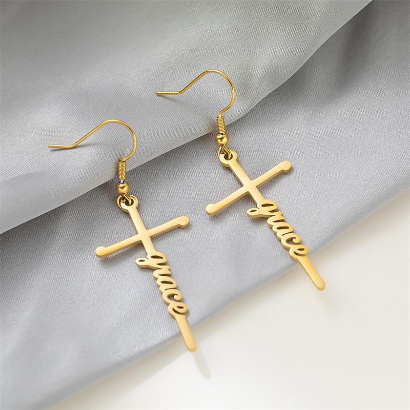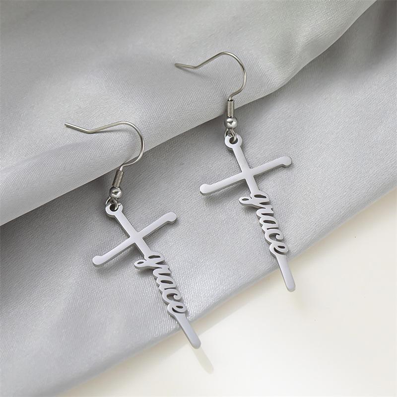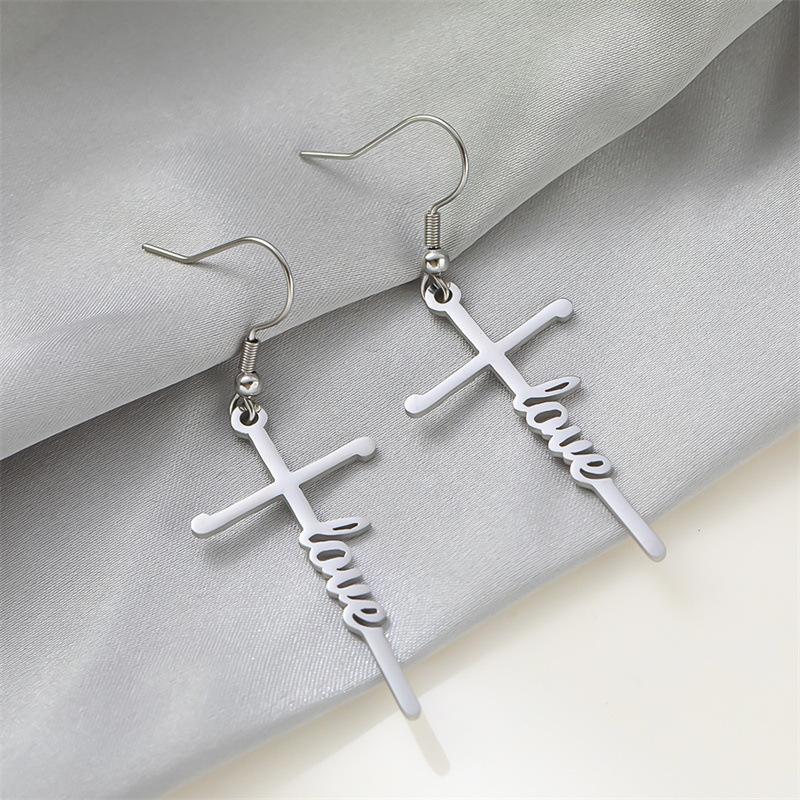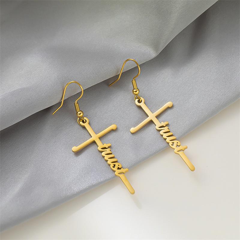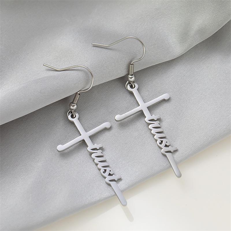 Pendientes de acero de titanio transfronterizos nuevos, pendientes de acero inoxidable con letras inglesas de esperanza bendecida, estilo frío para mujer