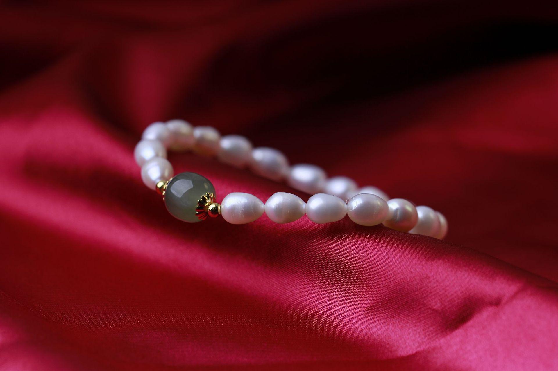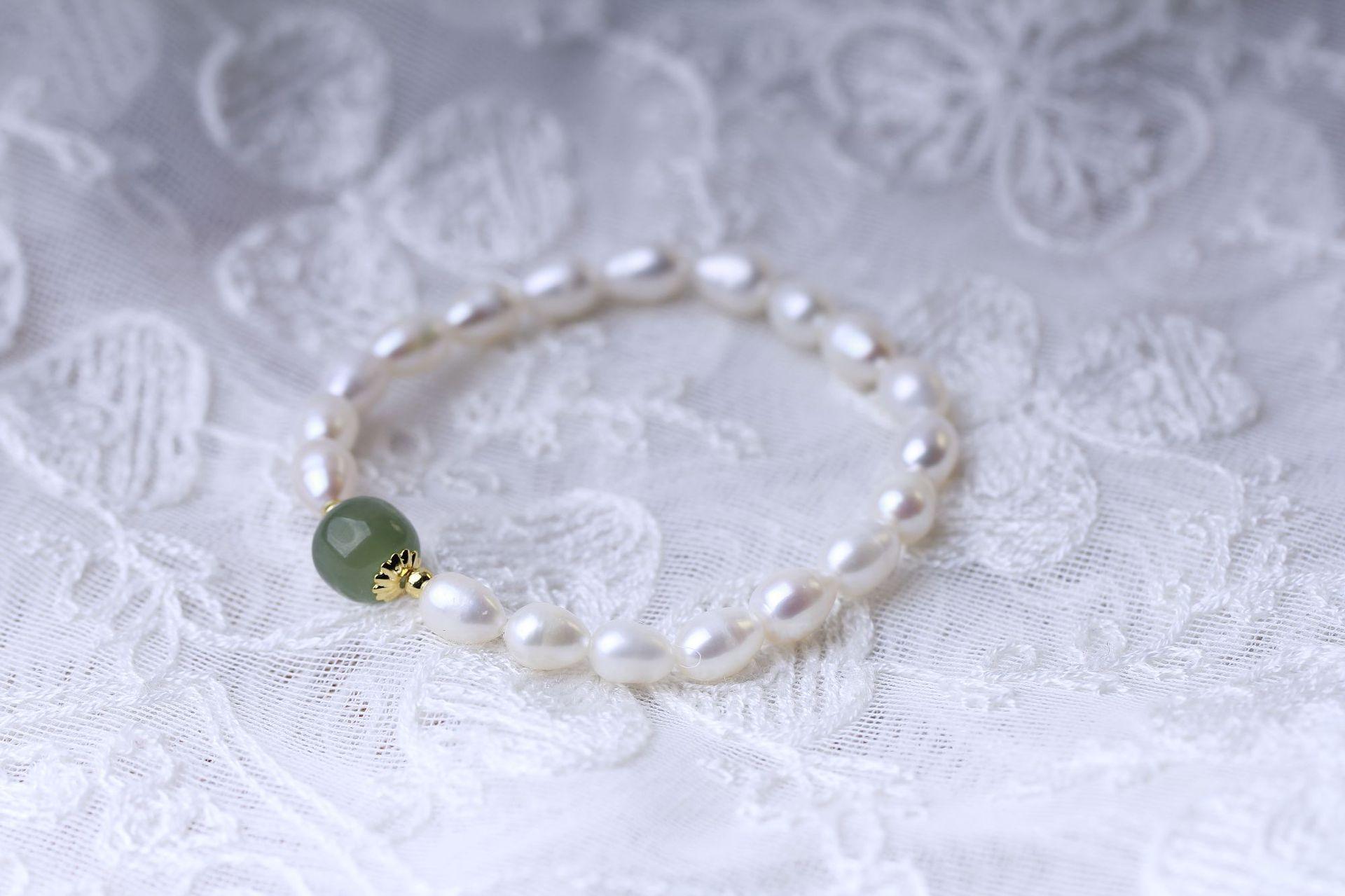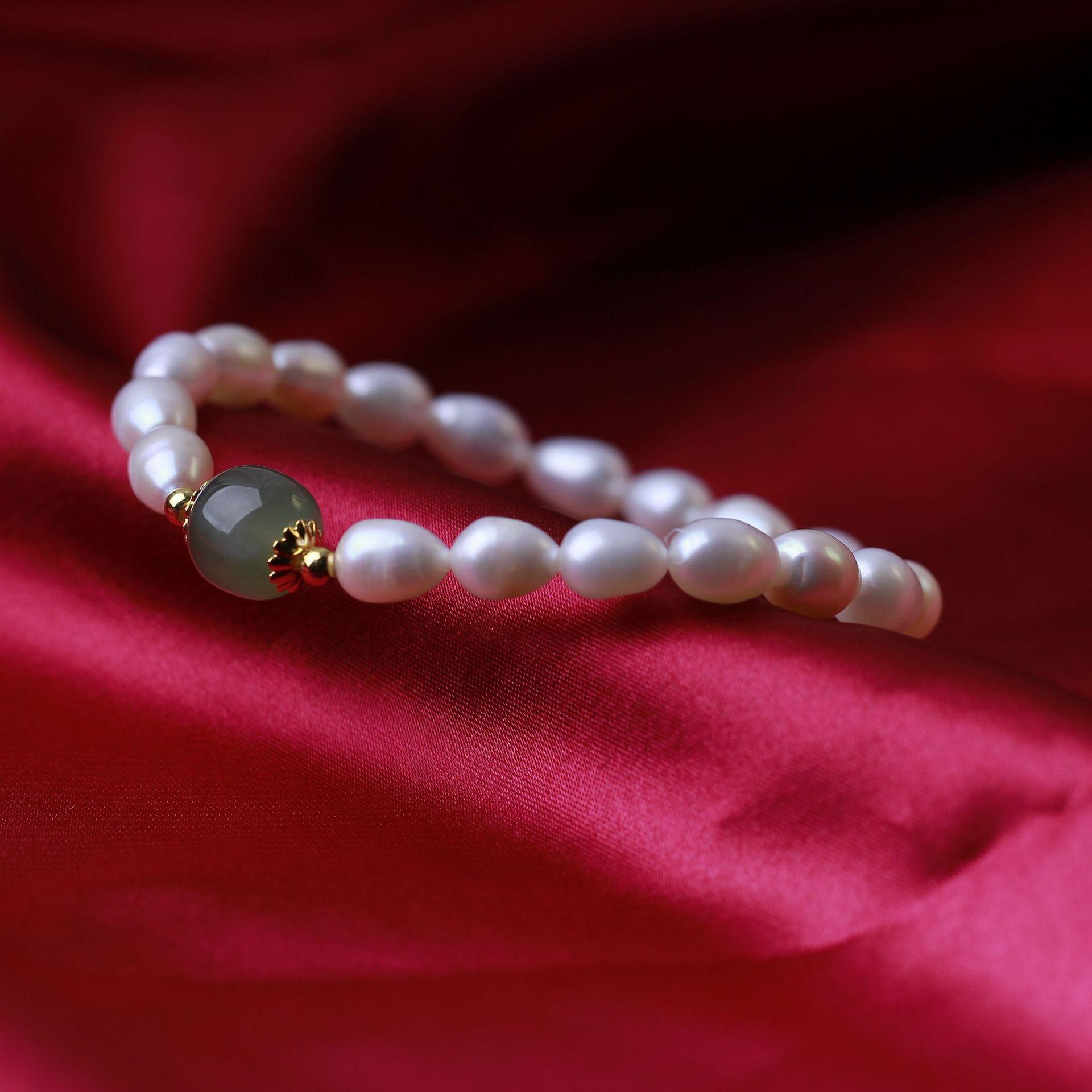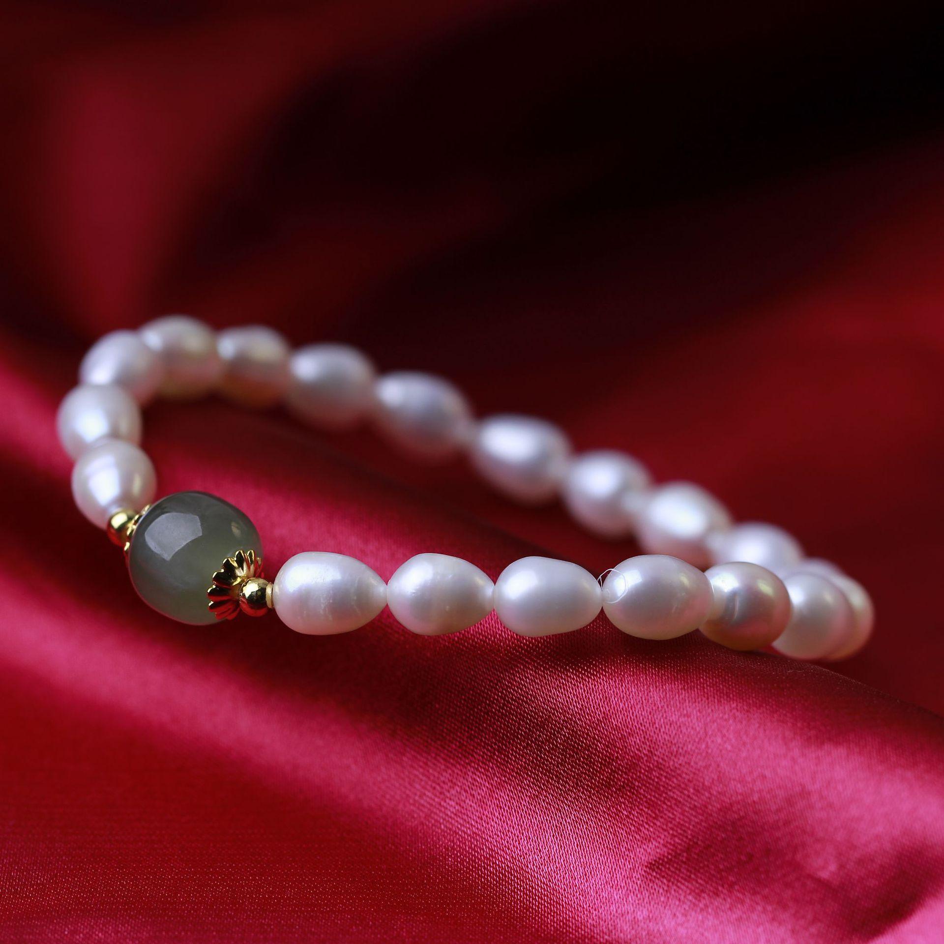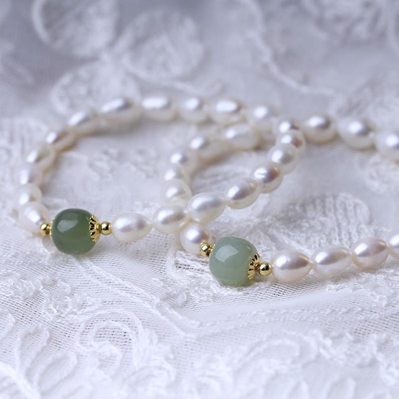 Pulsera de Perlas Naturales de Agua Dulce Estilo Simple Frío con Jade Hetian Qingshui Cuenta Antigua Barroca de una Sola Vuelta