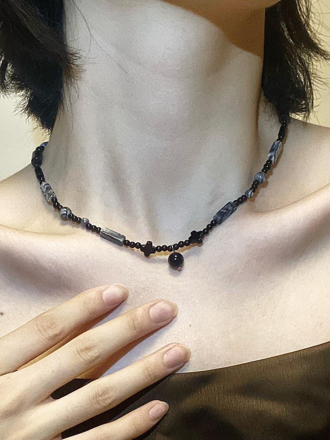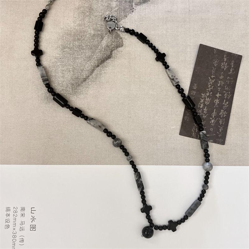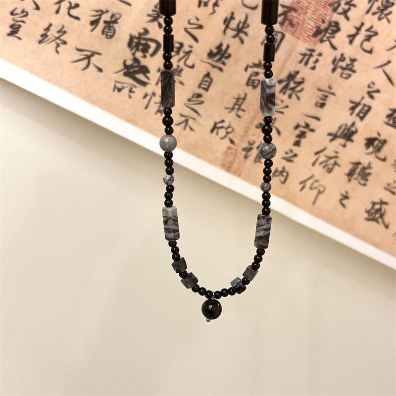 Collar de cuentas chino negro nuevo, estilo tinta, nuevo nicho, estilo nacional antiguo, accesorios de estilo zen de gama media-larga.