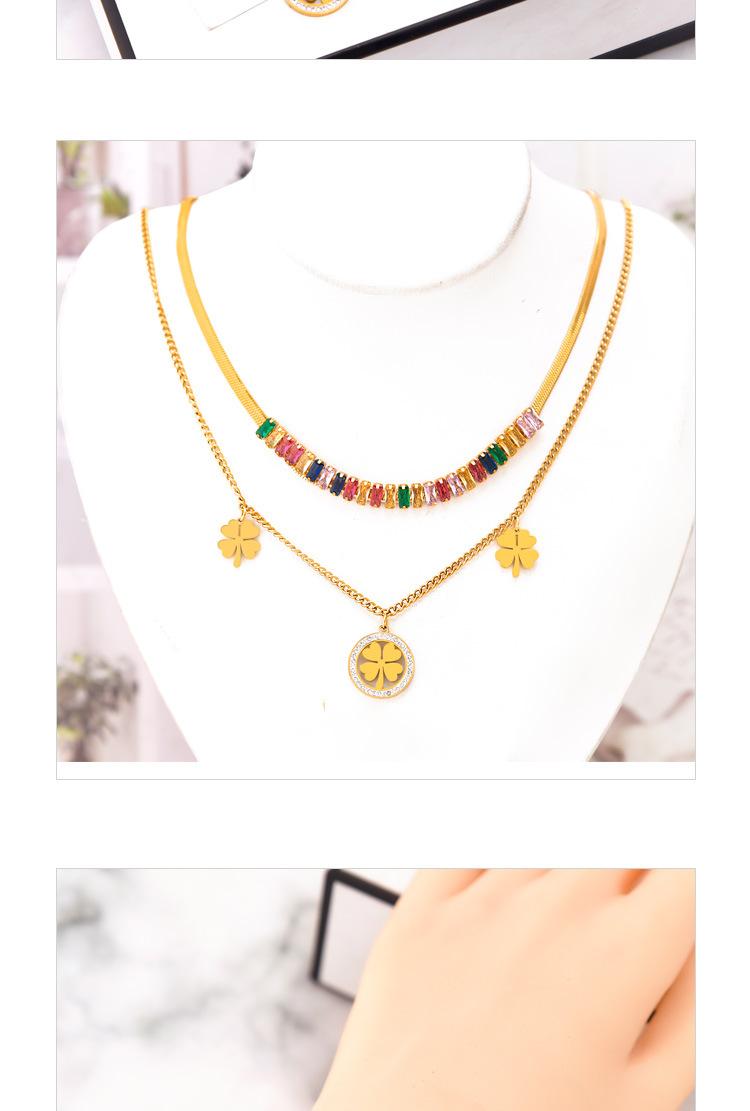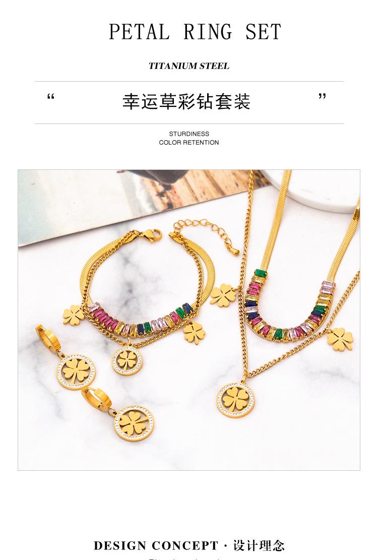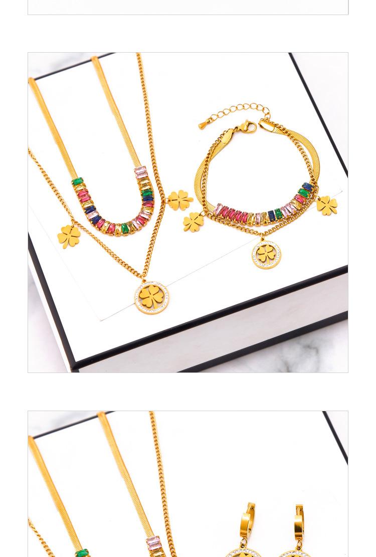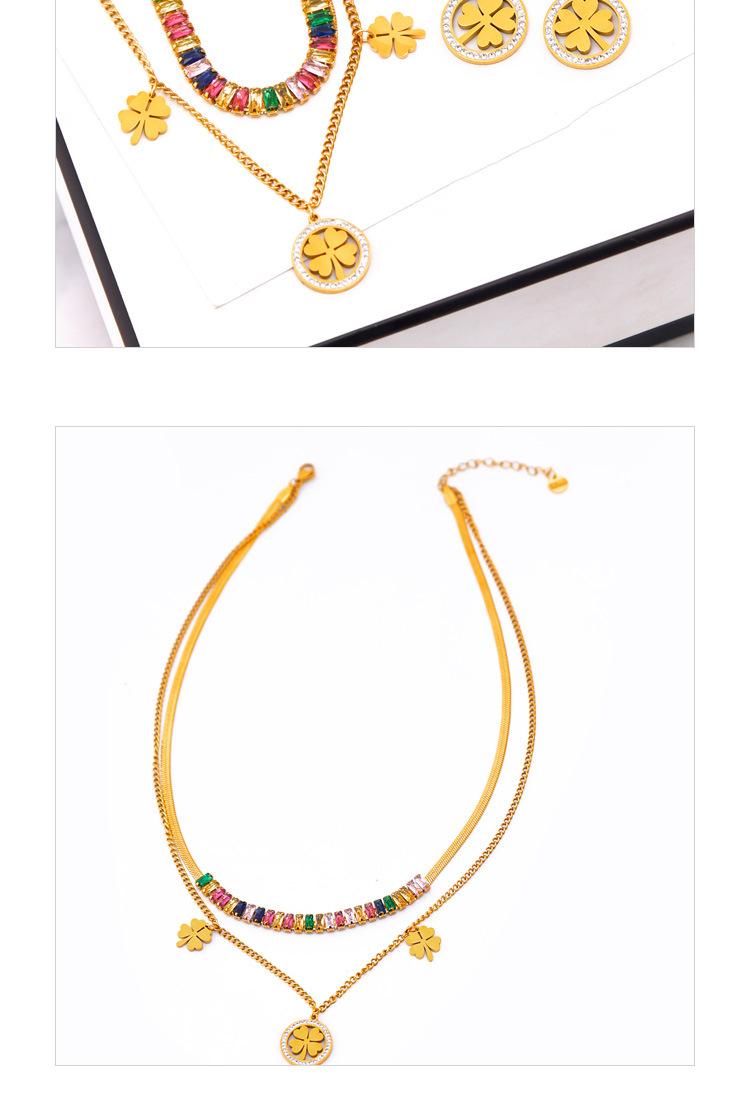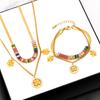 Nuevo collar de doble capa apilado de joyería transfronteriza de Amazon con diamantes de colores de acero de titanio y redondos de marca, pendientes de pulsera con diamantes de la suerte.