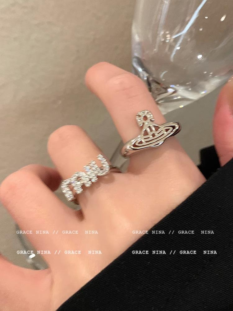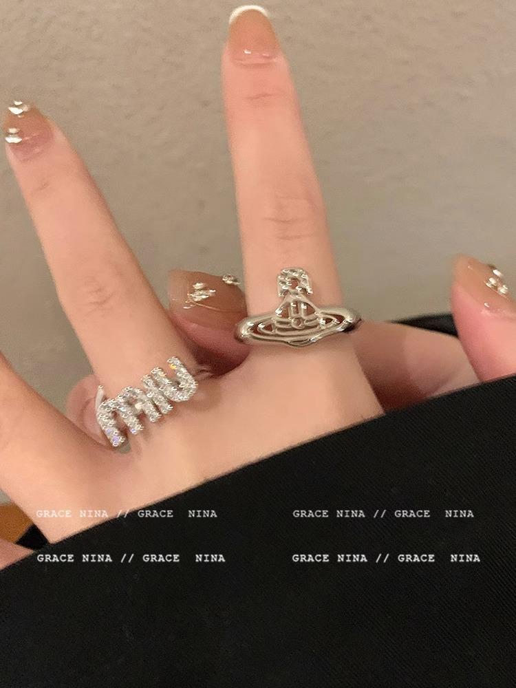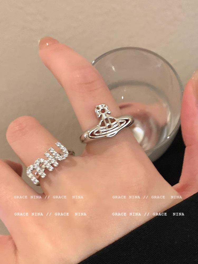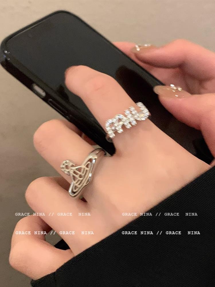 Anillo de diamantes con letras brillantes de diseño de nicho para mujer, ligero, de lujo, de alta calidad, para el dedo índice, con personalidad, a la moda, para parejas, para hombre.
