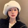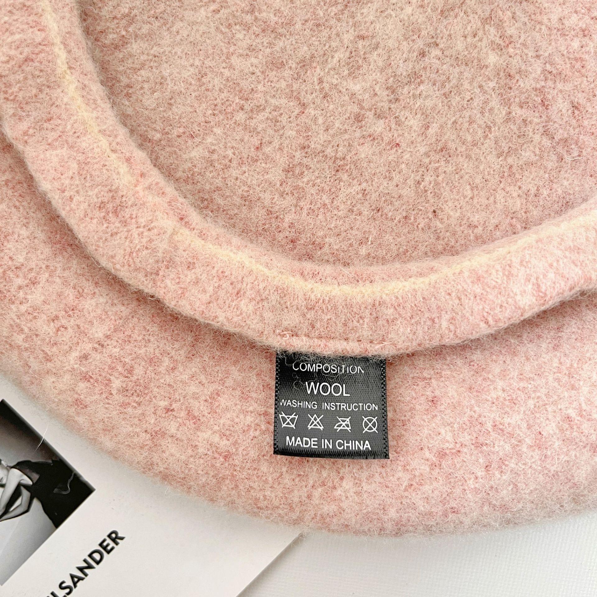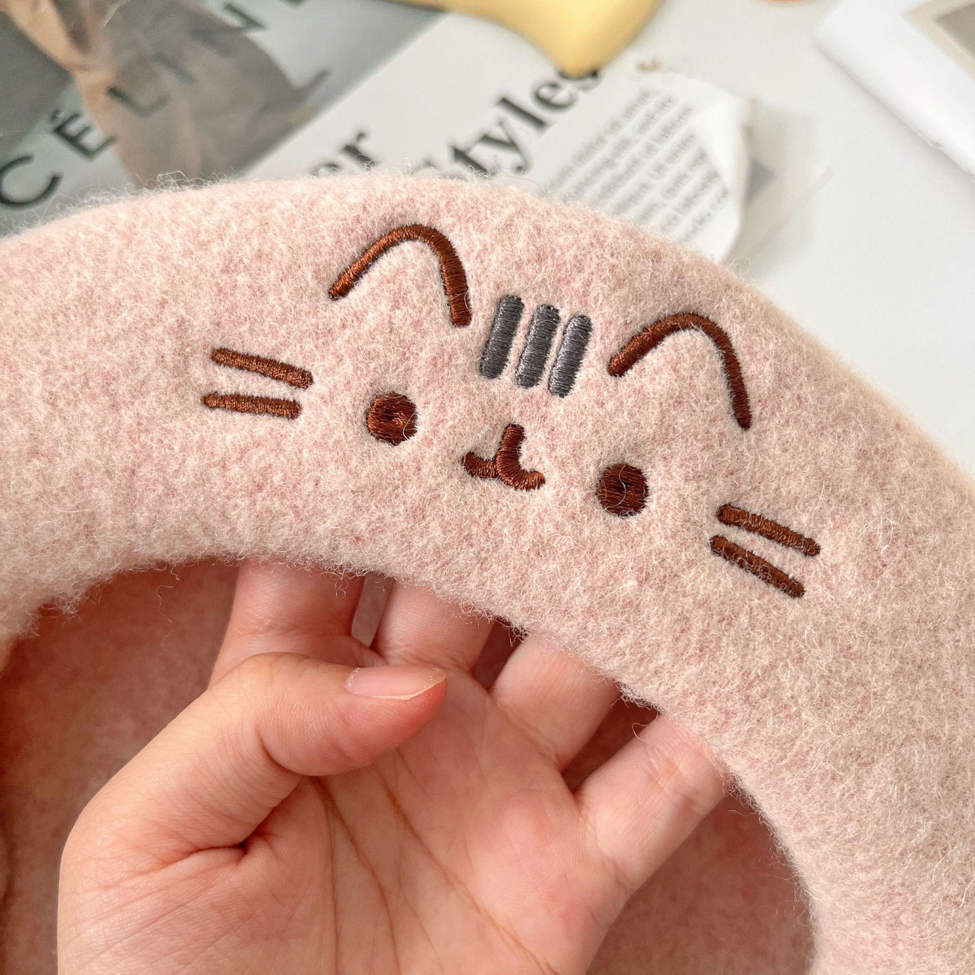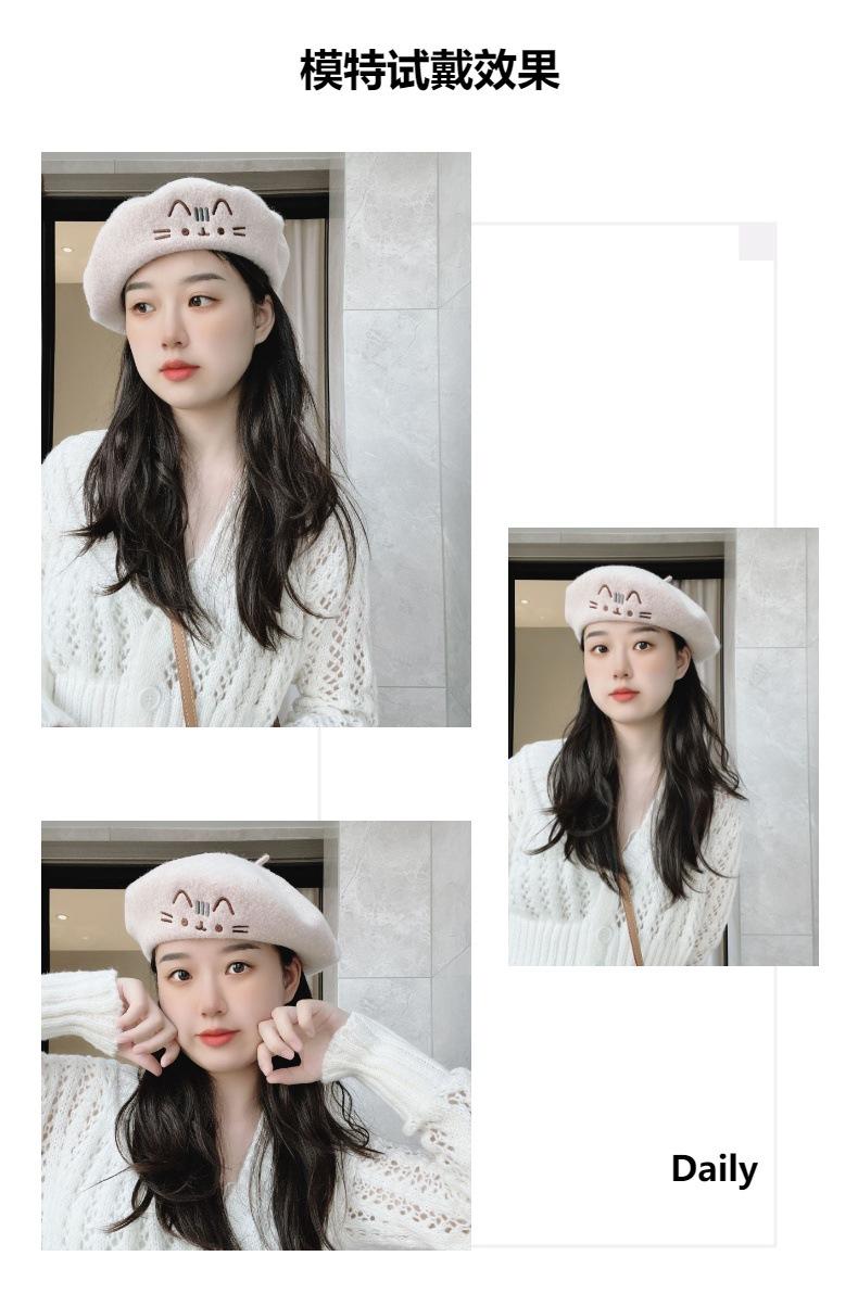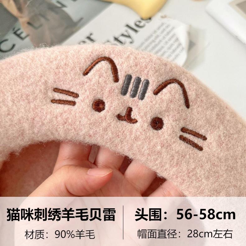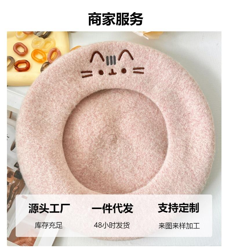 Otoño e Invierno nuevo estilo japonés lindo cálido boina de pintor de lana versátil dulce albaricoque gato bordado boina de lana