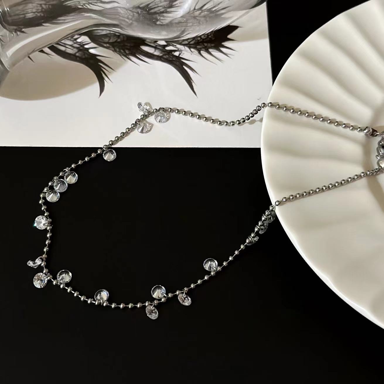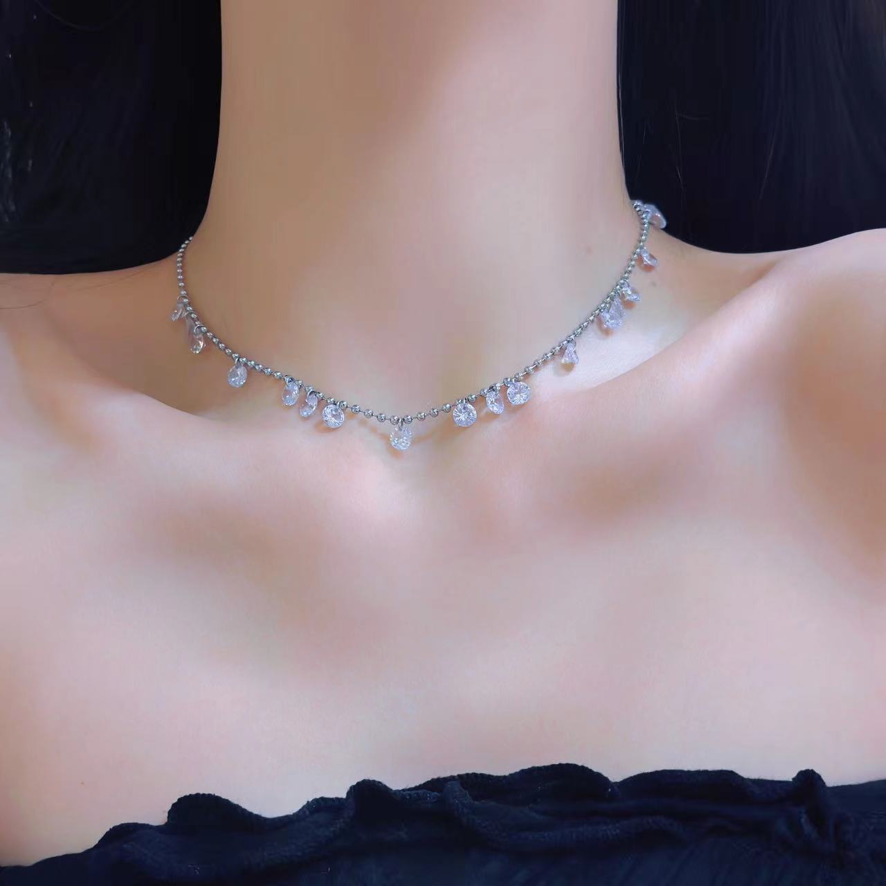 Collar de cadena de clavícula con circonitas de río, estrella rota, lágrimas brillantes de hada dulce y súper brillante, temperamento femenino, collar de temperamento corto con gota de agua simple a la moda