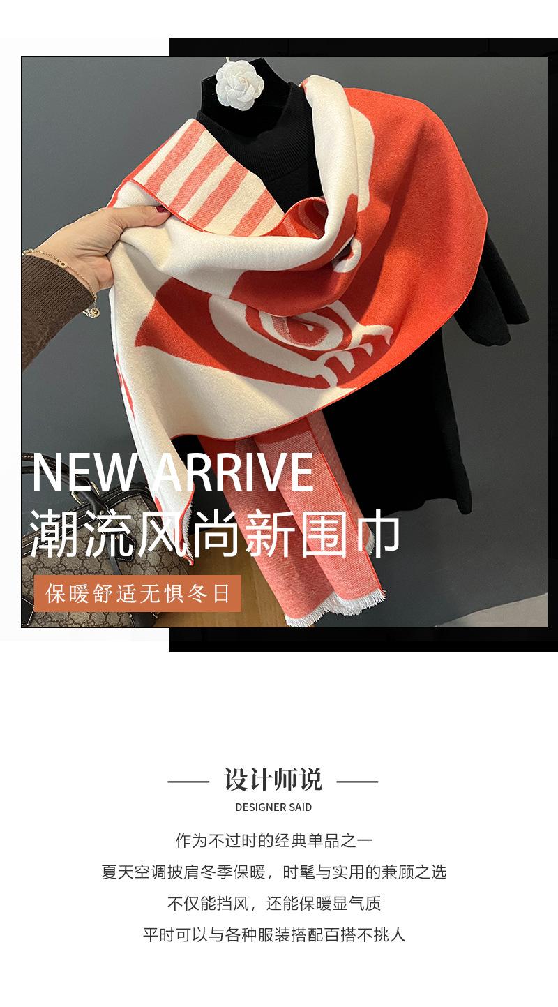 | Bufanda cálida nueva de otoño e invierno con letra H a juego de colores para mujer, chal largo grueso y cálido de doble cara de imitación de cachemira |