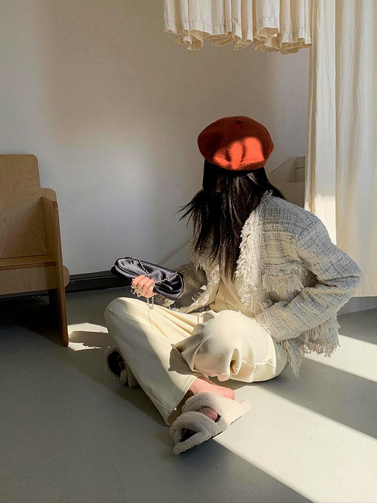 4:Los productos de lana pura rozan con los objetos durante el uso y forman bolitas con el tiempo. Evite el roce con superficies duras. Si se forman bolitas, puede usar una rasuradora o cinta adhesiva para eliminarlas; prácticamente no se notarán.