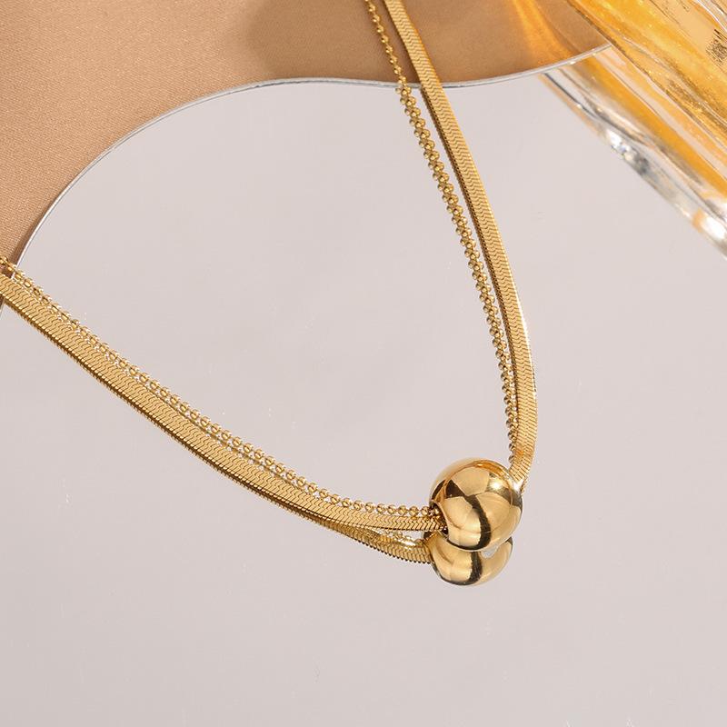 Collar de cuentas doradas de doble capa al por mayor transfronterizo para mujer, estilo frío, diseño de nicho simple, cadena de suéter de lujo ligero de alta gama
