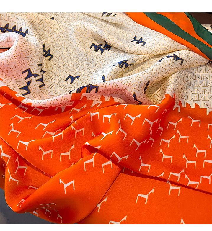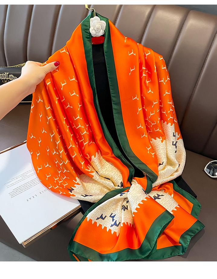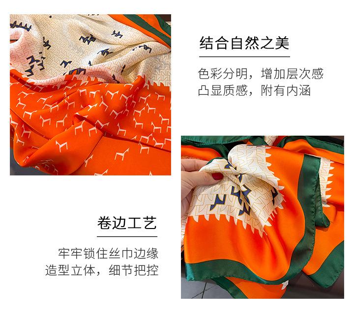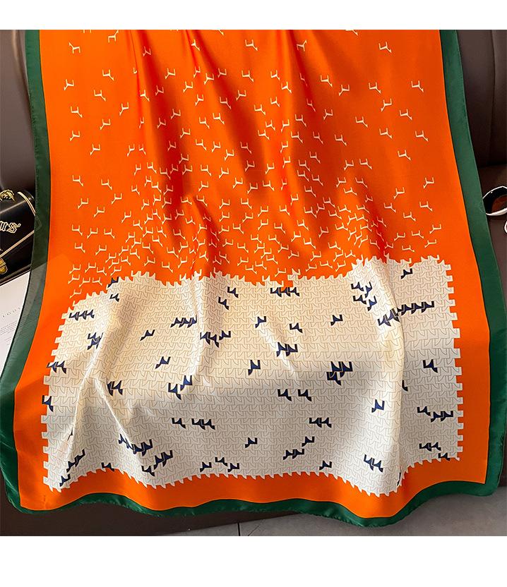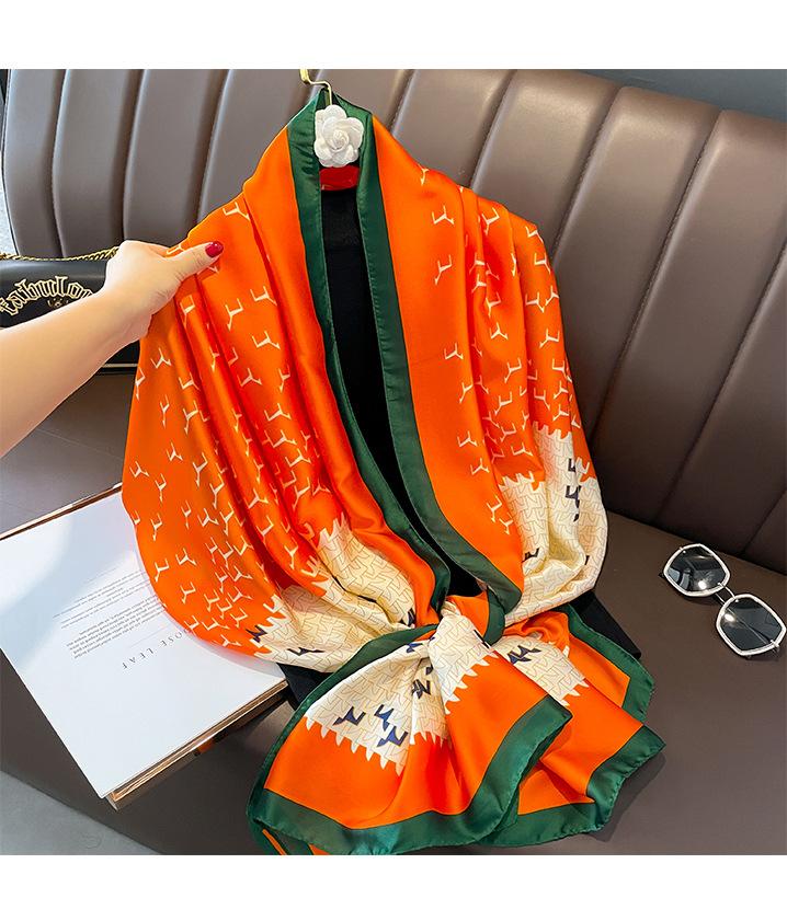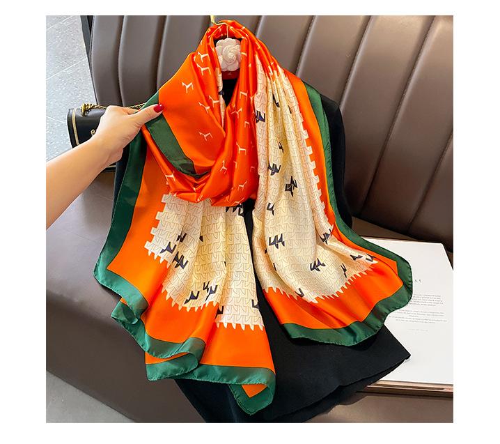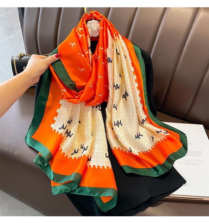 Bufanda Chal Nueva de Primavera y Otoño de Imitación Seda para Mujer Chal de Moda Coreana de Alta Gama para Mujer Bufanda de Seda con Letras Protector Solar