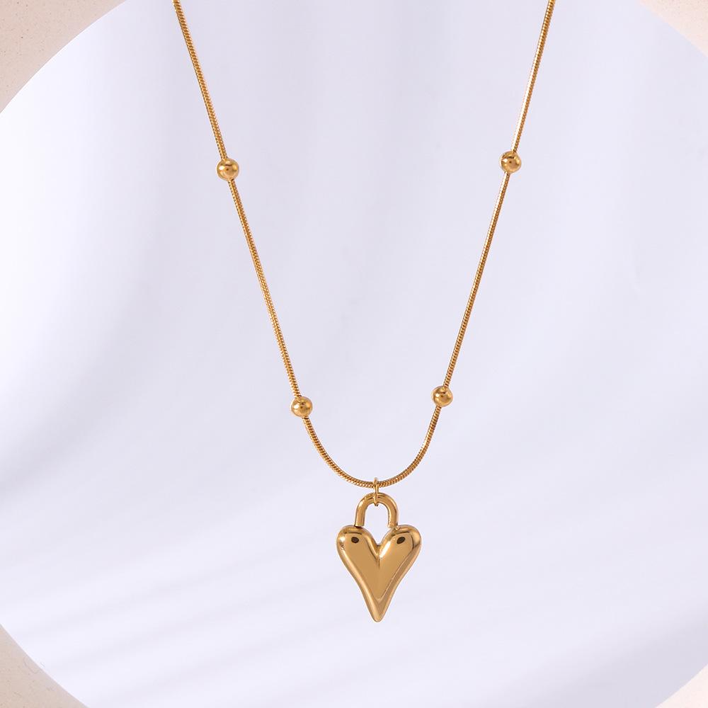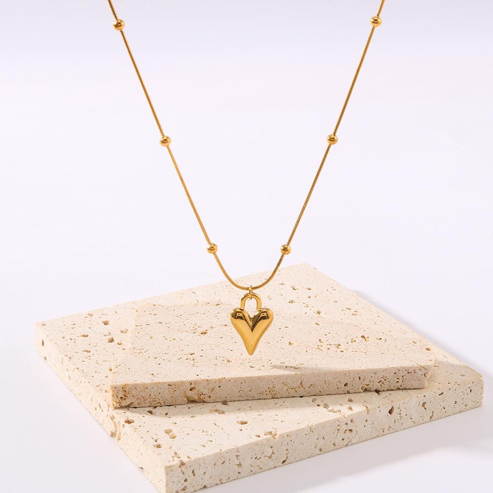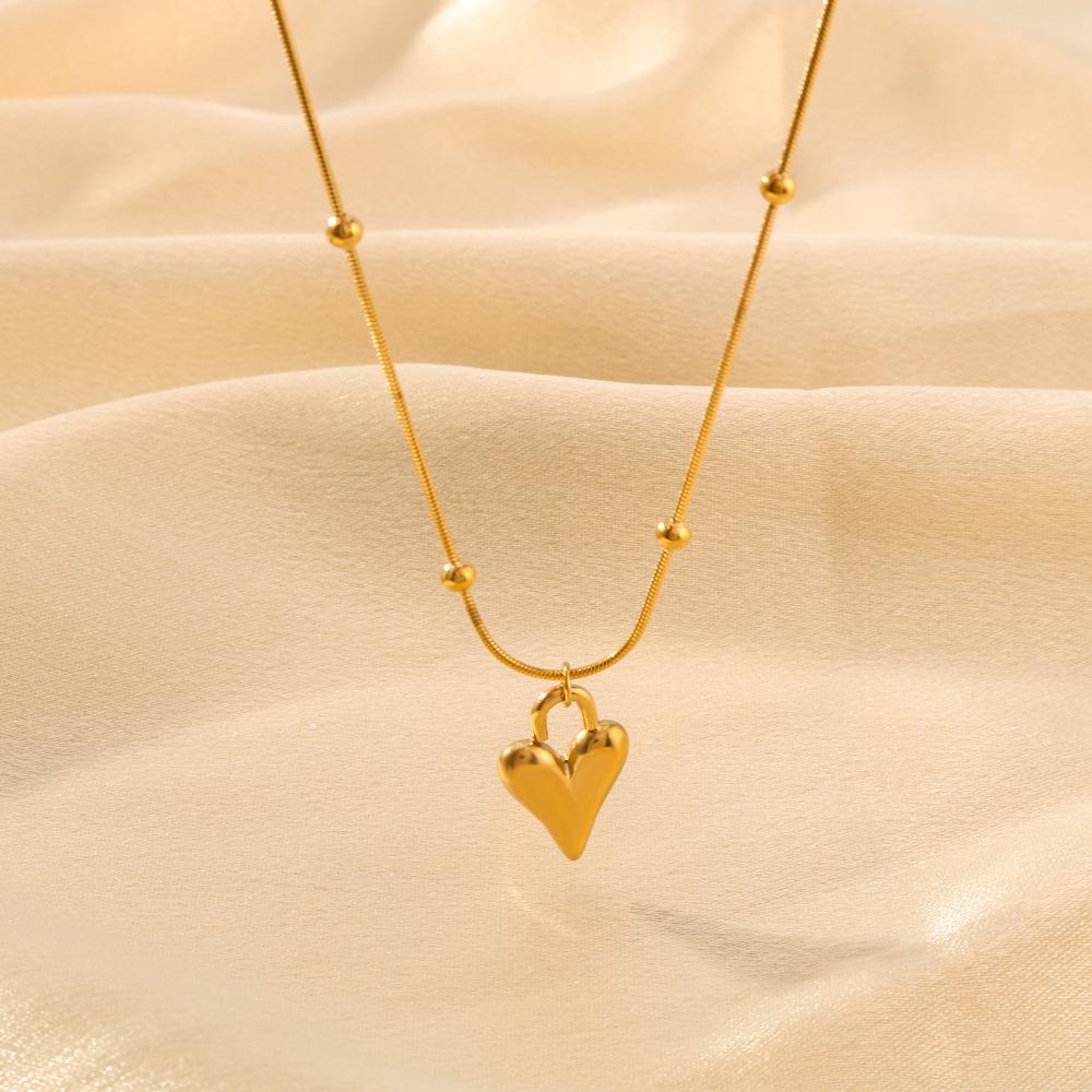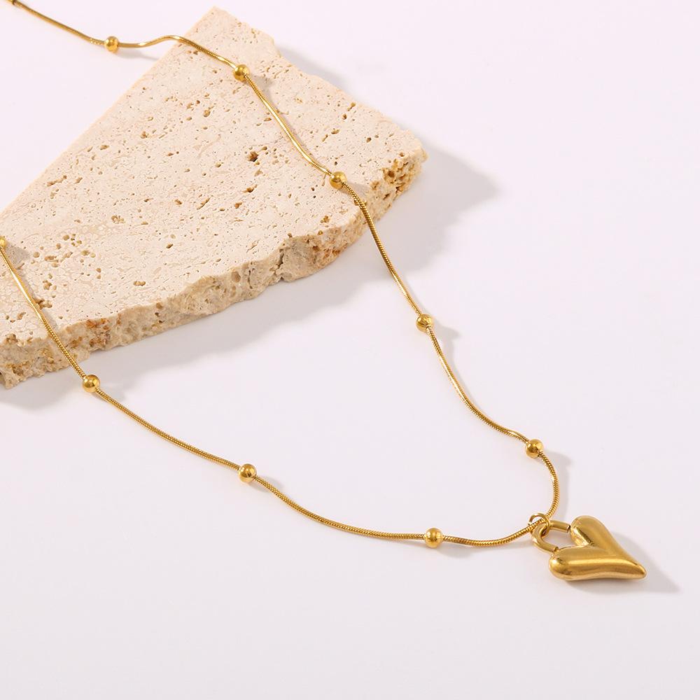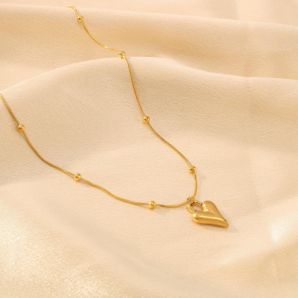 Collar de acero de titanio con forma de corazón de amor caliente de comercio exterior, cadena de bolas tridimensional, chapado en oro de 18 quilates, cadena de clavícula para mujer que no se decolora