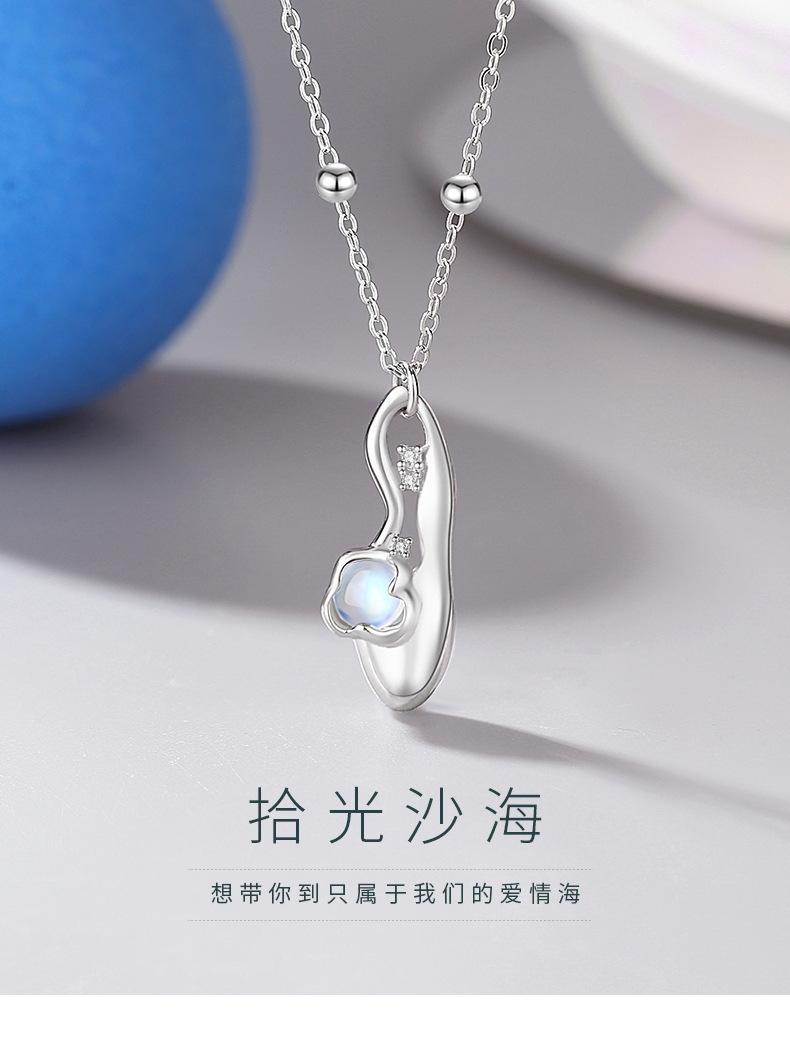 Collar original de arena de mar con luz para mujer, colgante de viento en plata de ley 925 con red de piedra lunar roja, cadena de clavícula, joyería al por mayor