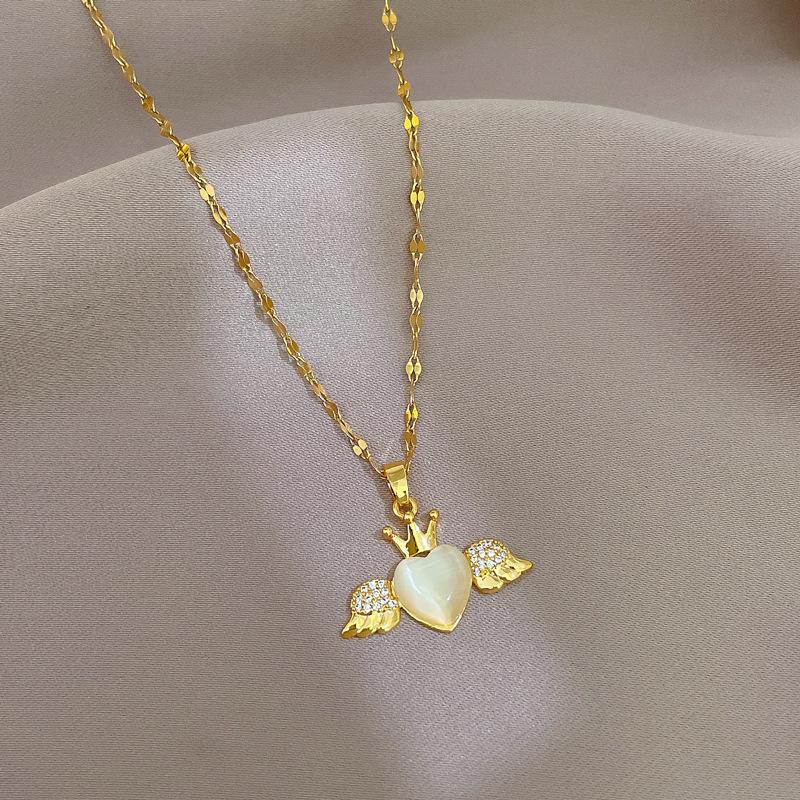 [Acero de Titanio] Lujo Ligero Micro-incrustado Ojo de Gato Ángel Amor Collar para Mujer Nueva Cadena de Arco Lujo Ligero Diseño de Nicho Sentido