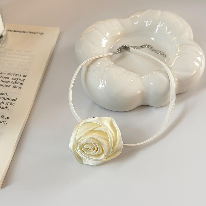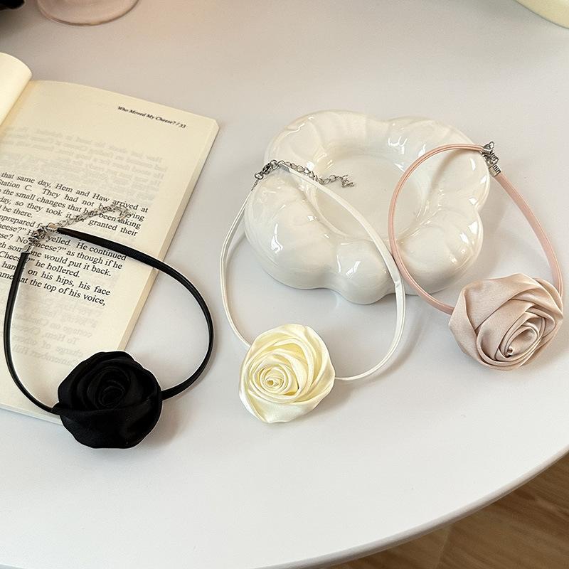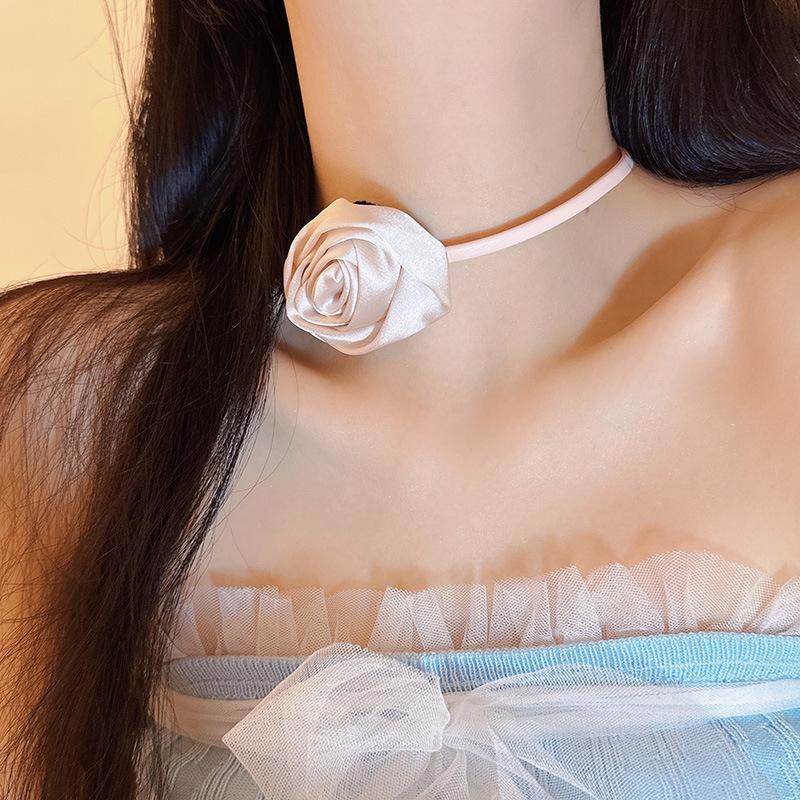 Collar de rosas Pure Desire para mujer, diseño de nicho, collar de seda retro para muñeca, cadena de cuello con correa sexy, sentido de alta gama