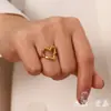 Anillo Francés Diseño Nicho para Mujer Mismo de Blogger Corazón Martillado Lujo Accesible Acero Titanio Chapado en Oro Anillo que No se Desvanece