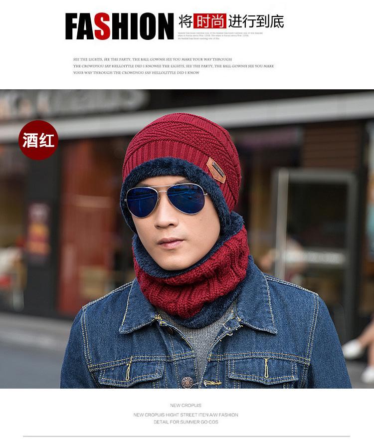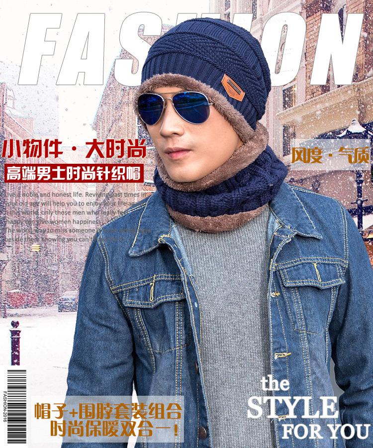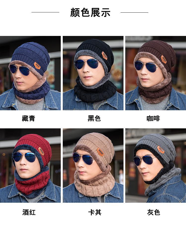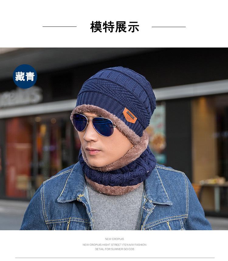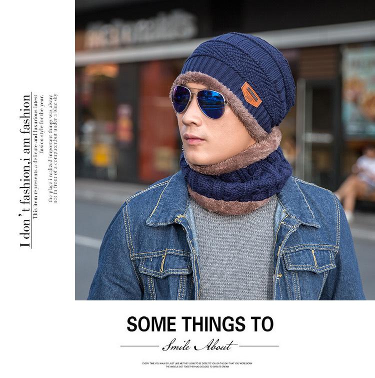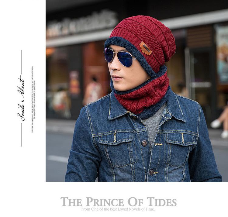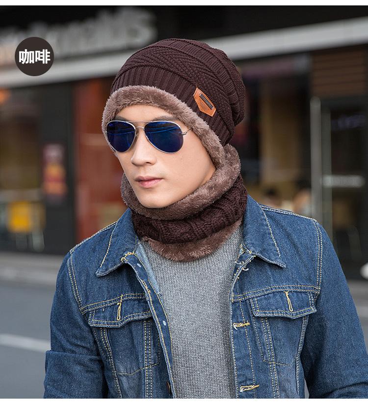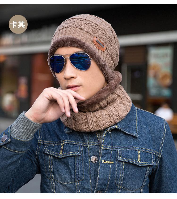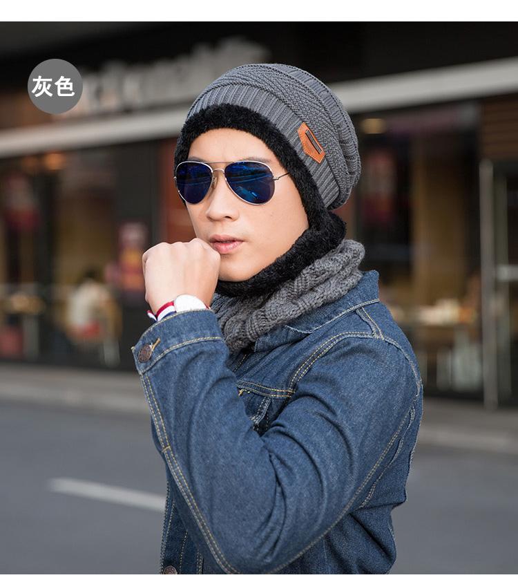 Gorro de lana de punto para hombre coreano de otoño e invierno Cat elder brother 2020 con forro polar acolchado [gorro + bufanda] juego de dos piezas