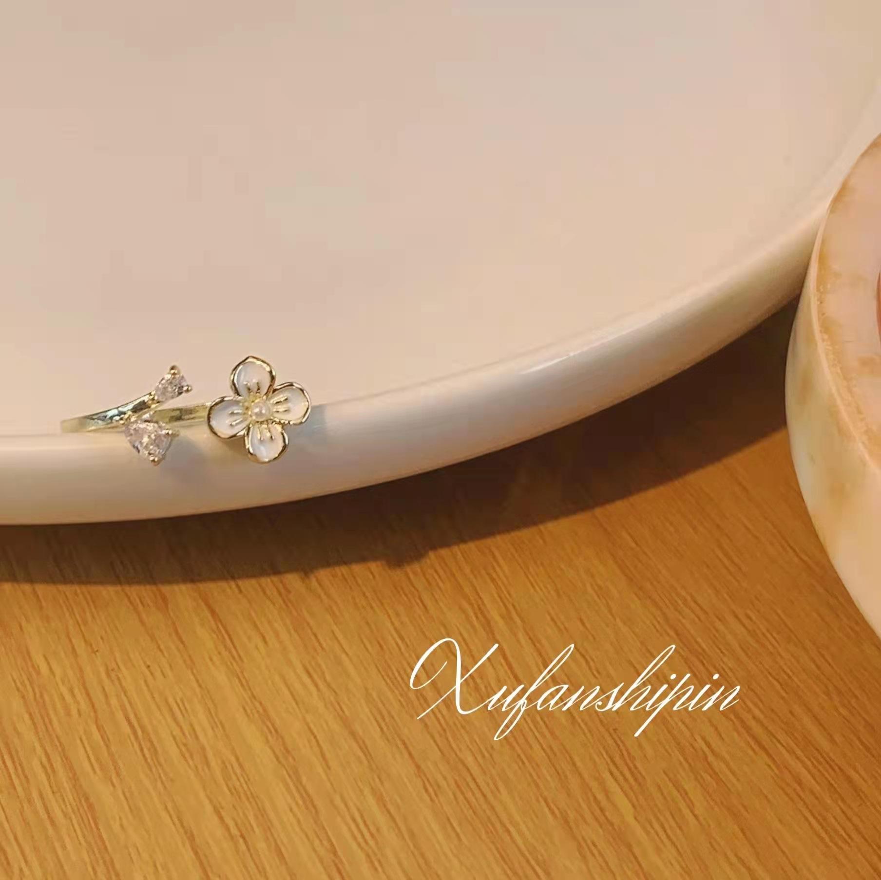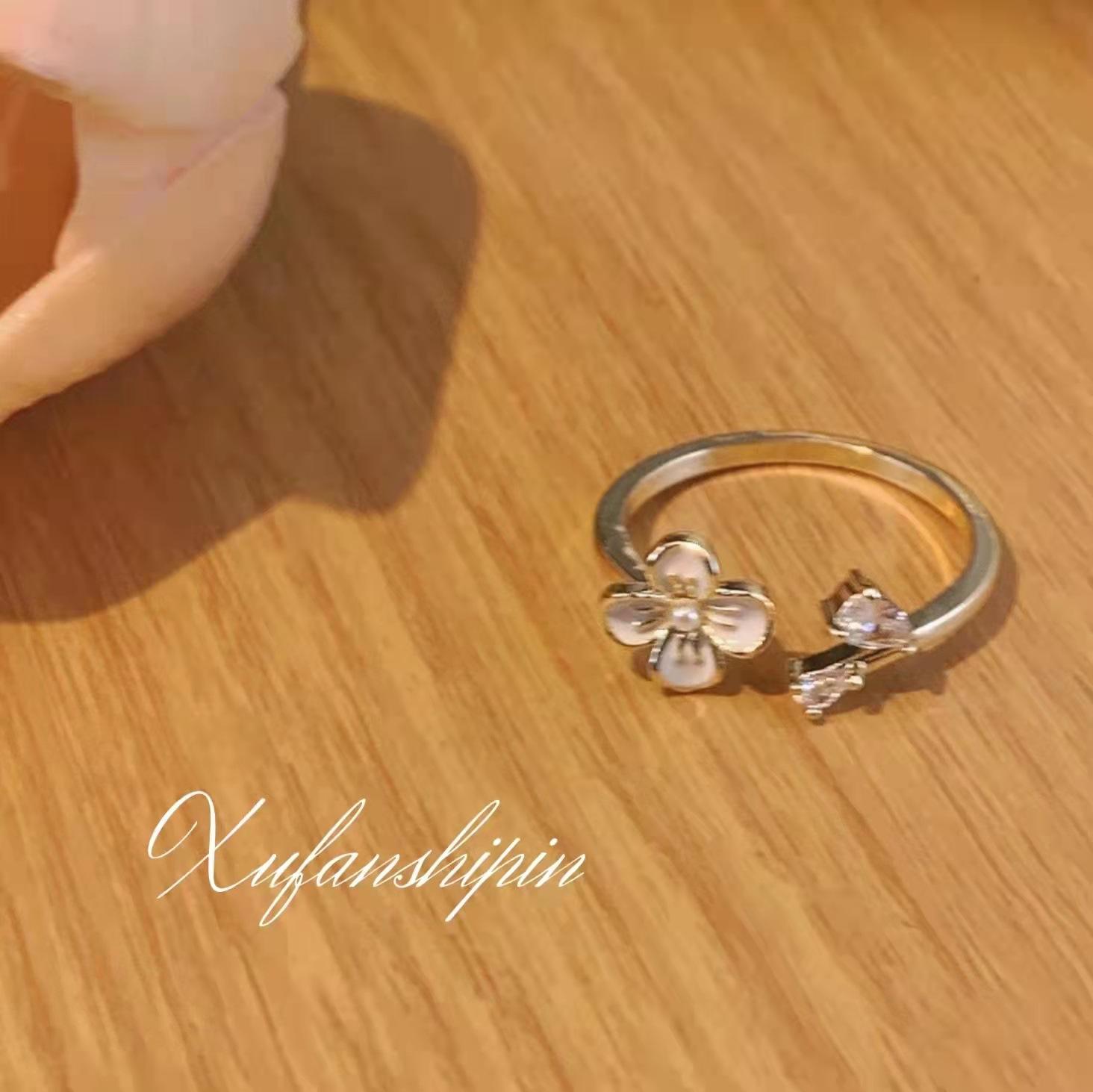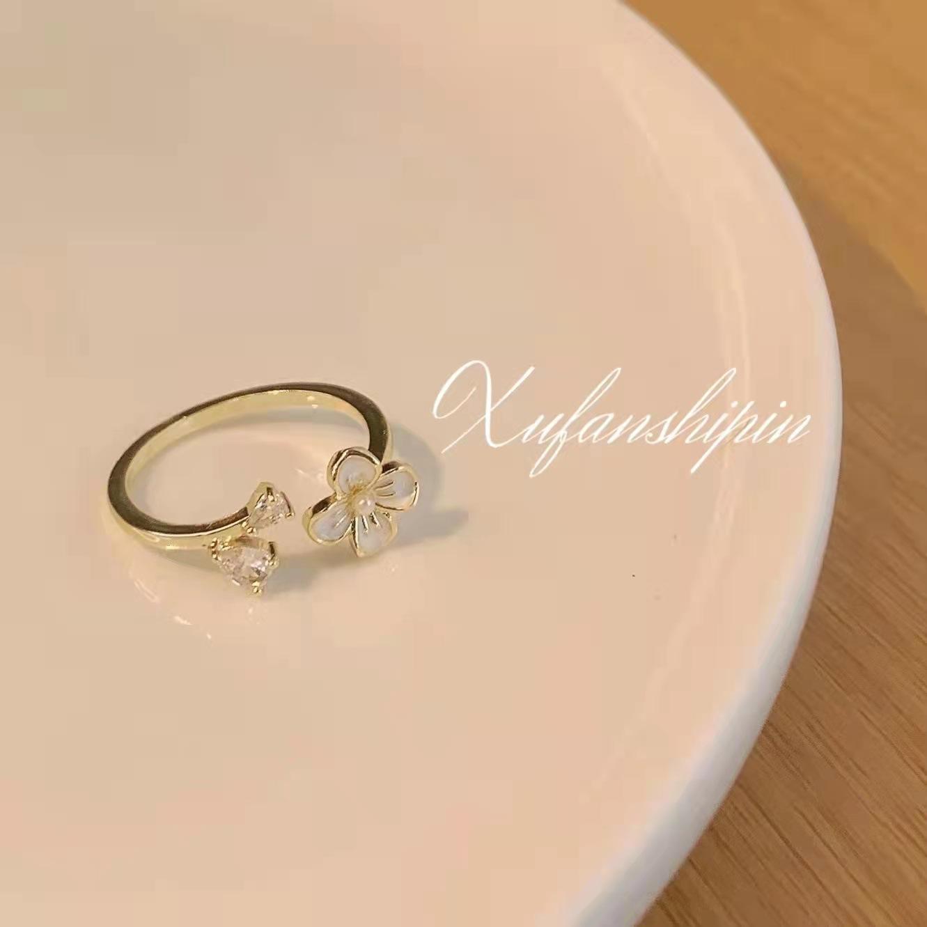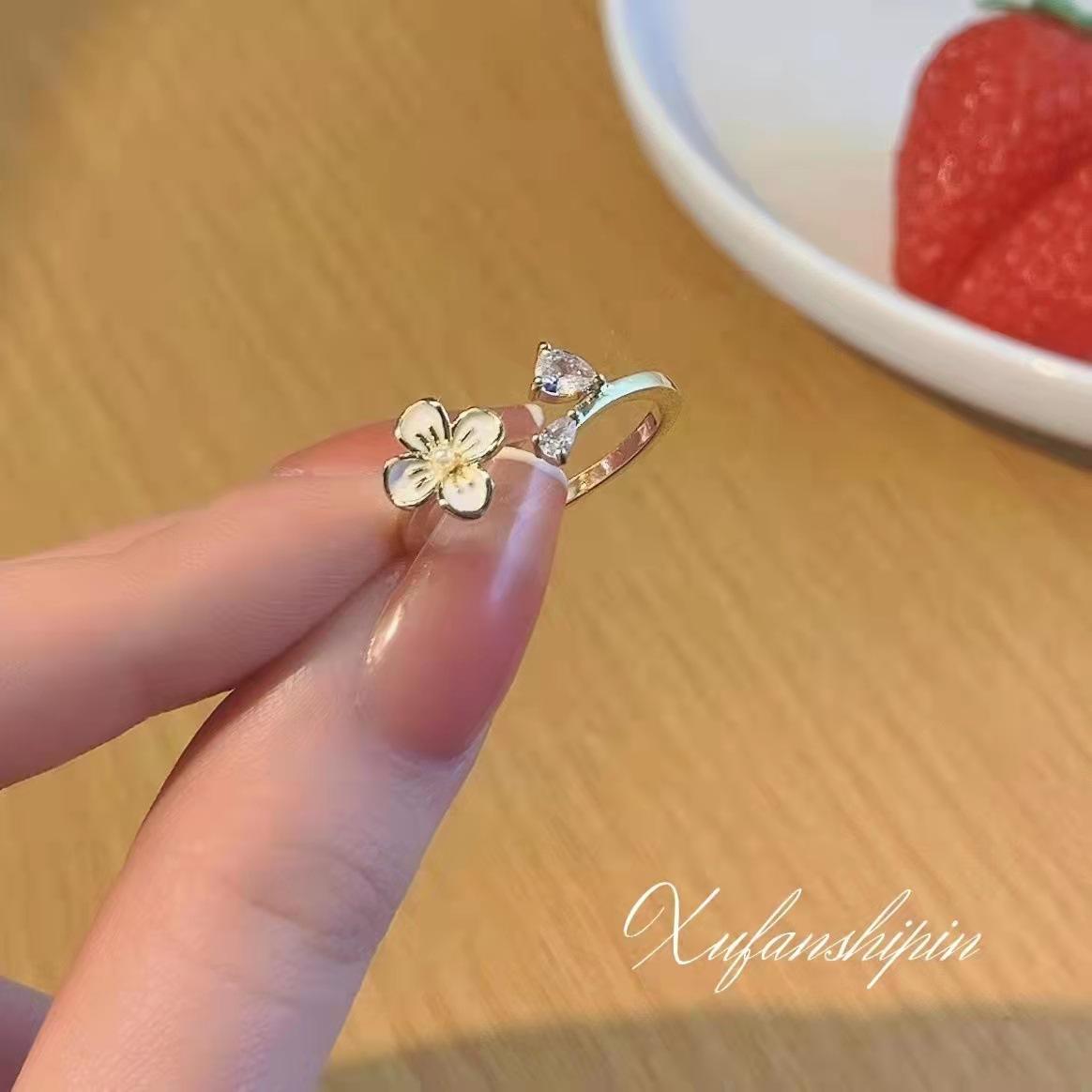 Anillo de flor fresca de estilo coreano, nuevo diseño de nicho para mujer, anillo de dedo índice abierto con circonita de lujo ligero