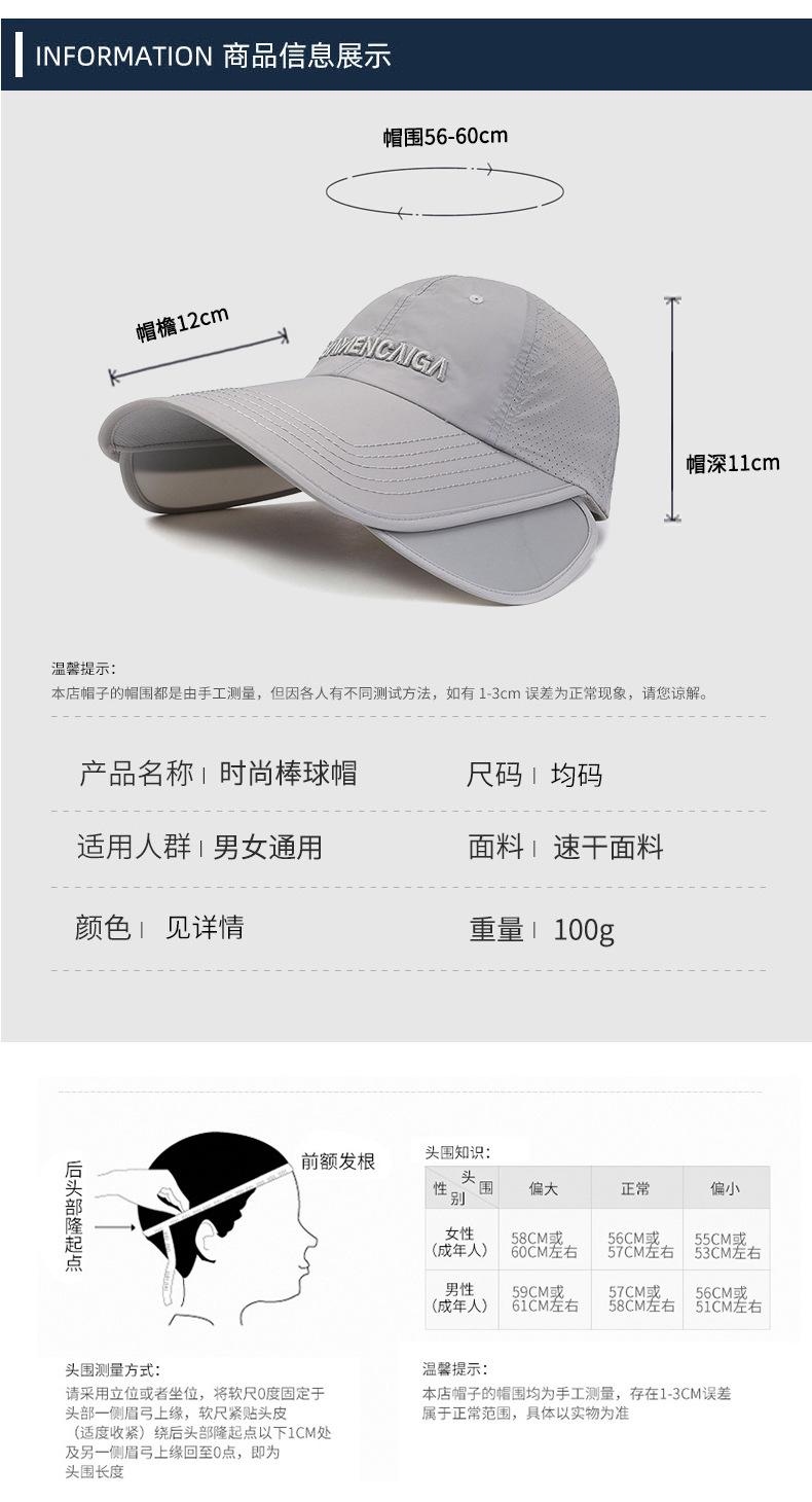 Nueva gorra de béisbol de verano para mujer, fina, ancha, resistente al sol, transpirable, con visera grande, de secado rápido, para correr.