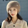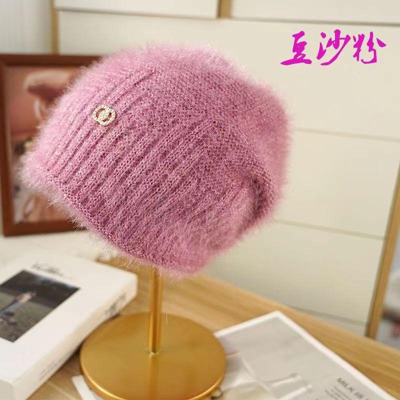 Sombrero de pila de moda de estilo coreano para otoño e invierno, sombrero rojo de red que combina con todo, sombrero de lana de punto cálido y grueso, sombrero para exteriores, sombrero de lana para mujer