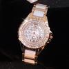 Venta caliente de comercio exterior, correa de malla dorada, reloj de mujer Ginebra, reloj creativo con destellos de diamantes, reloj de mujer, reloj de cuarzo, venta directa