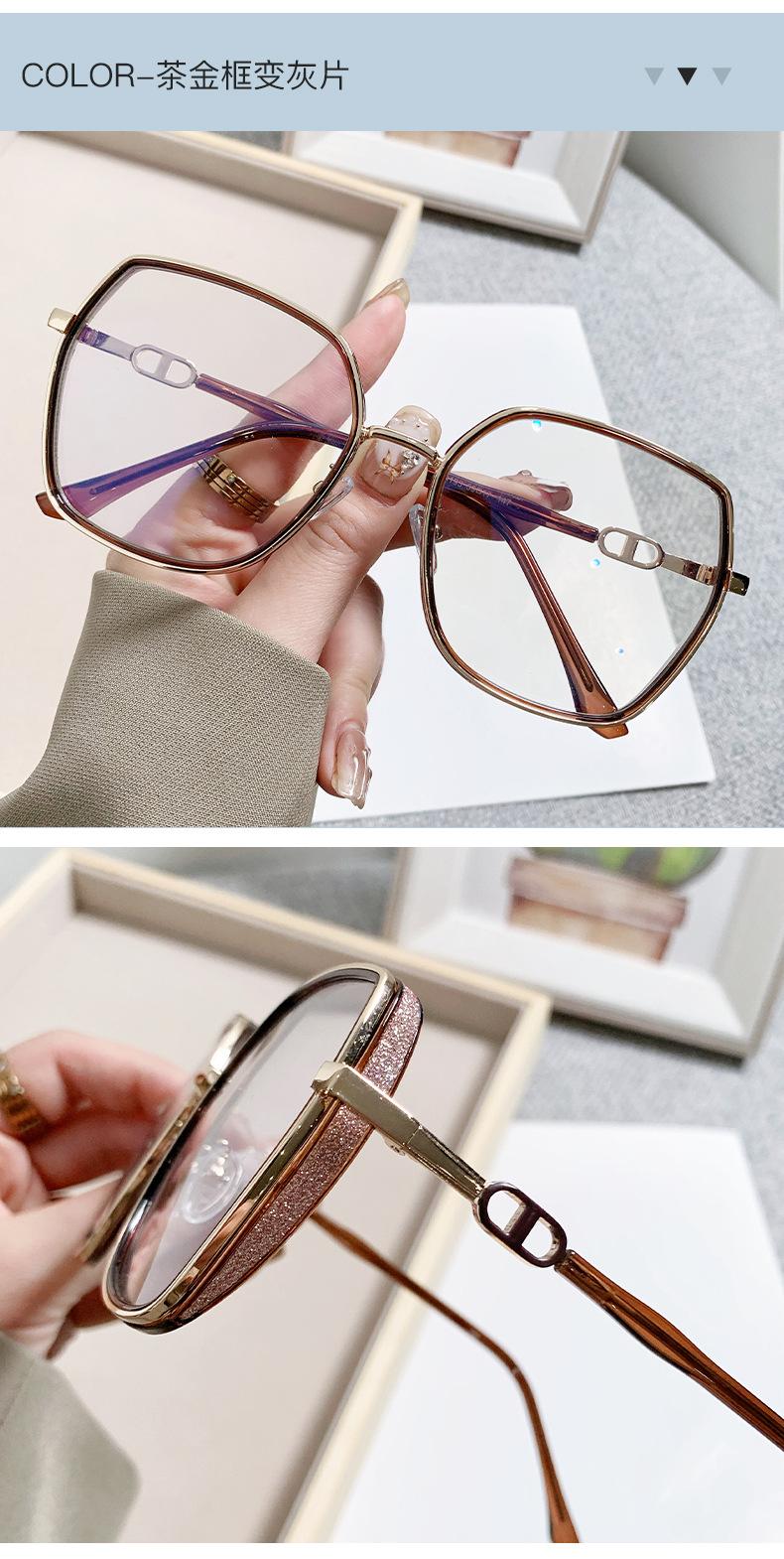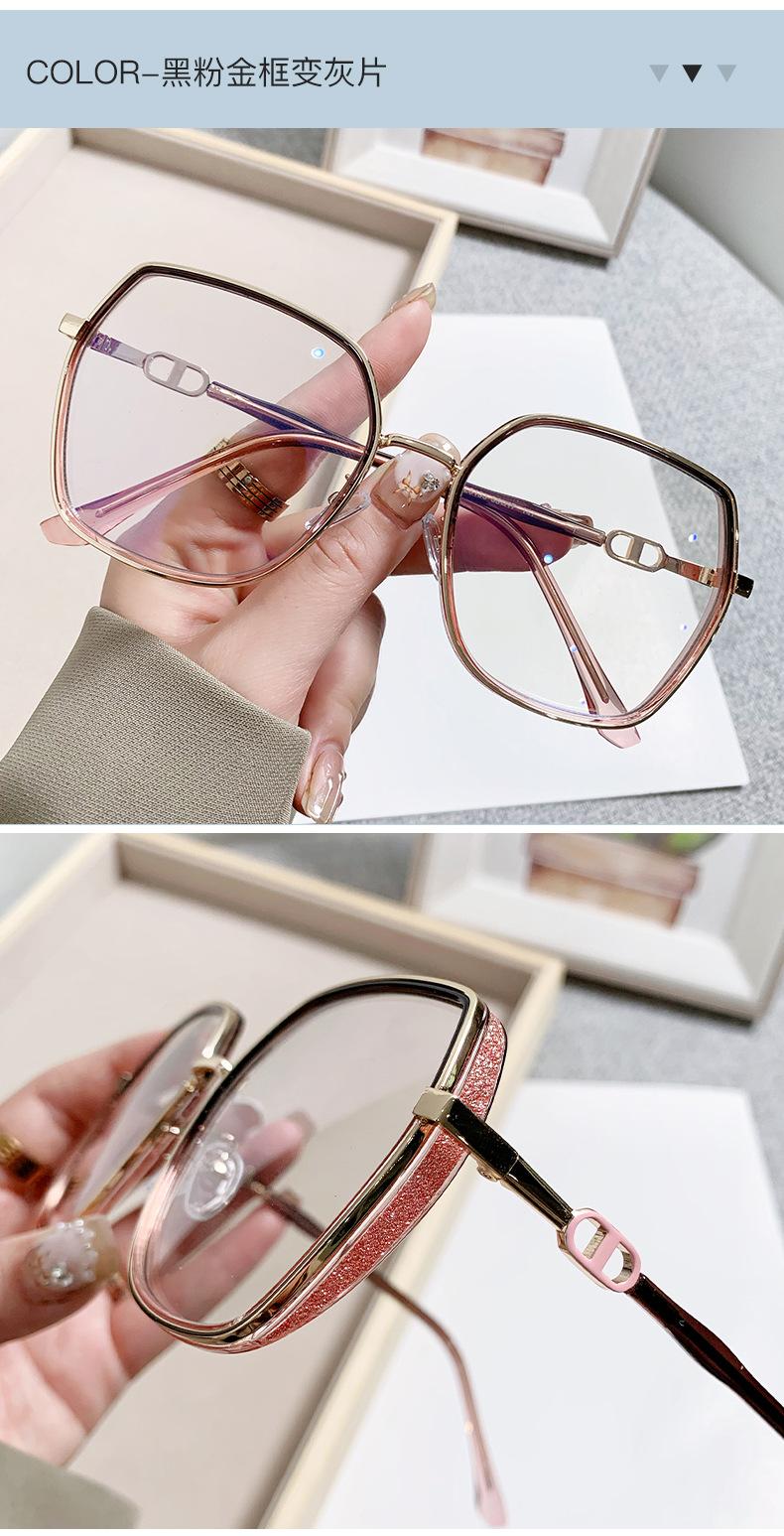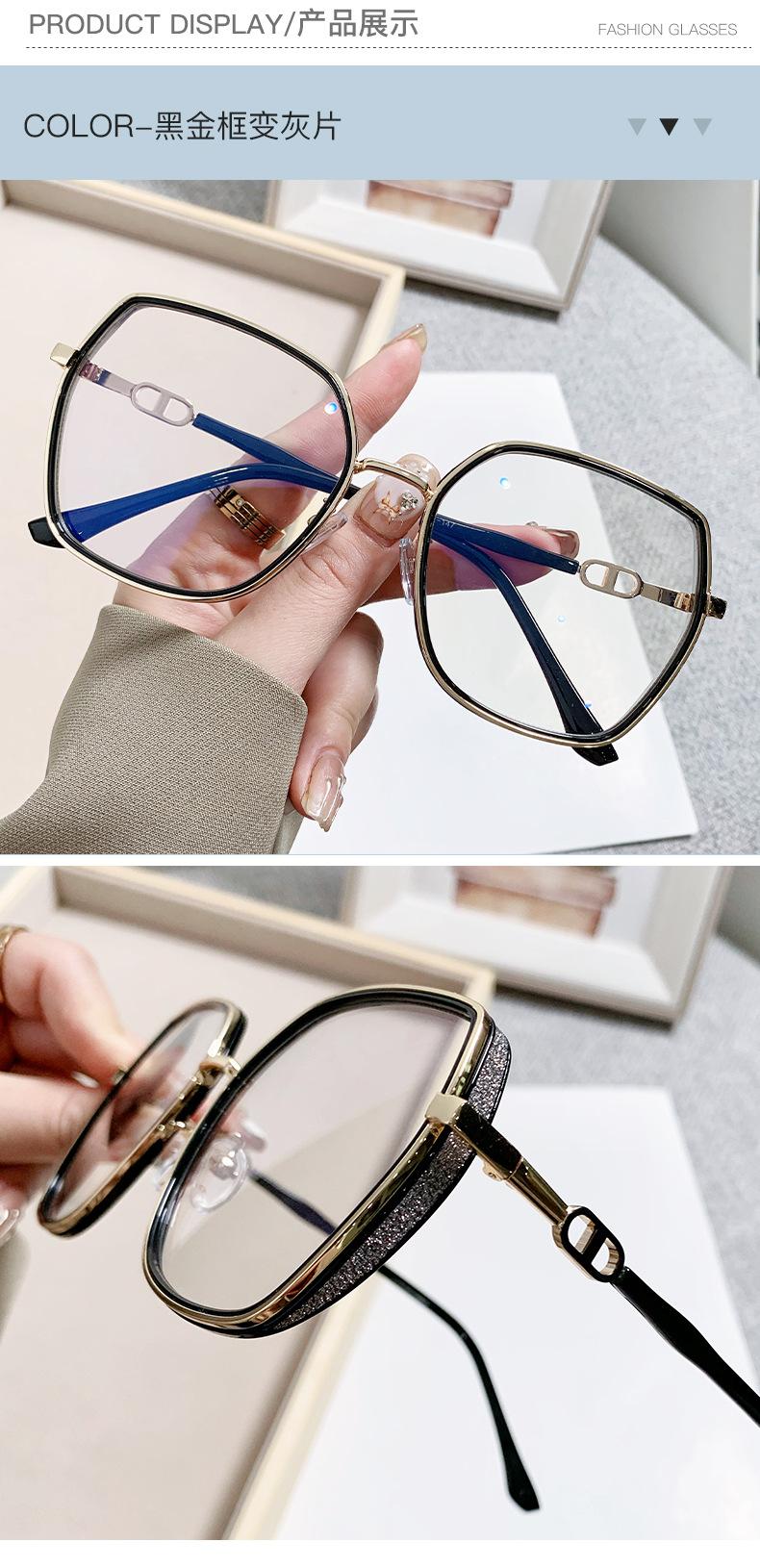 Anteojos de Moda con Borde Flash de Montura Grande Anti Luz Azul para Mujer Nuevos Anteojos Planos Fotocromáticos Anti-UV Se Pueden Equipar con Anteojos para Miopía