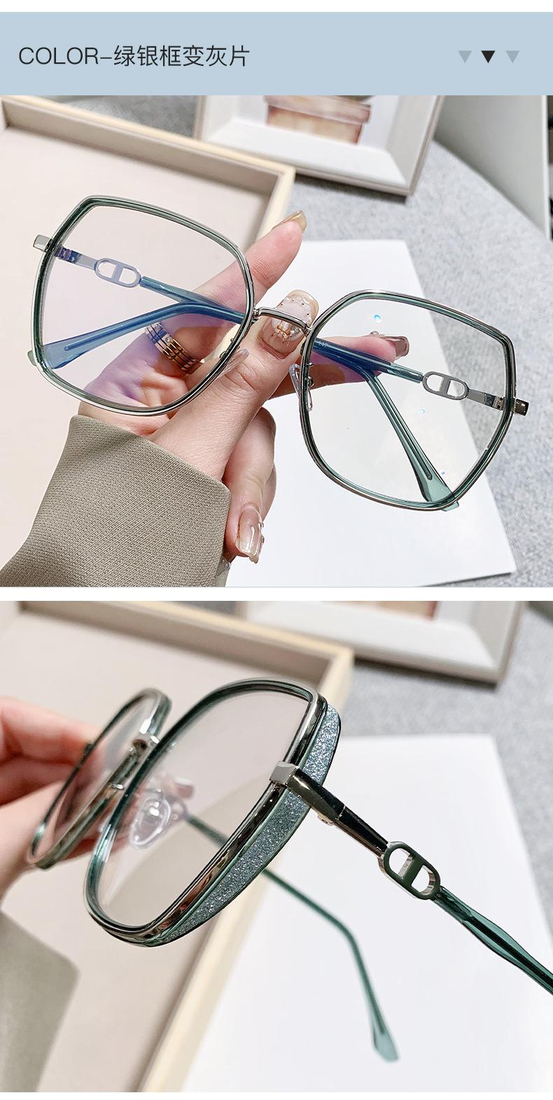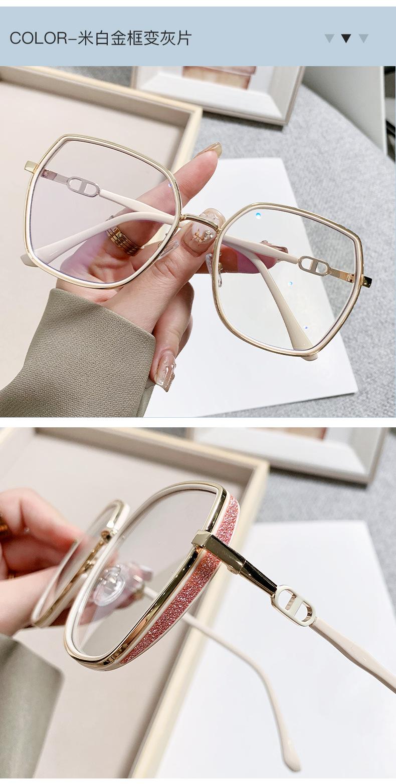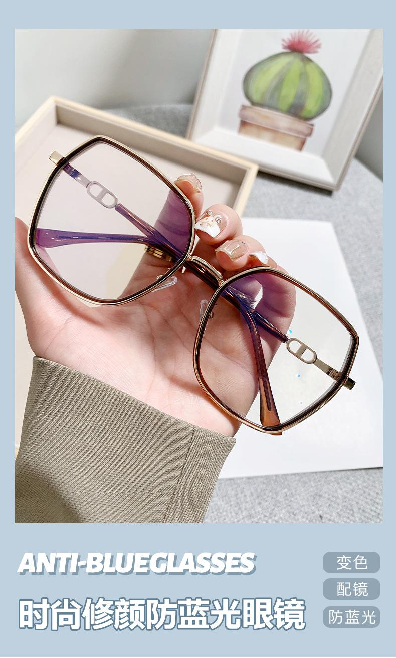 Anteojos de Moda con Borde Flash de Montura Grande Anti Luz Azul para Mujer Nuevos Anteojos Planos Fotocromáticos Anti-UV Se Pueden Equipar con Anteojos para Miopía