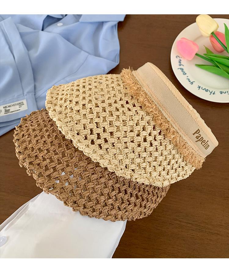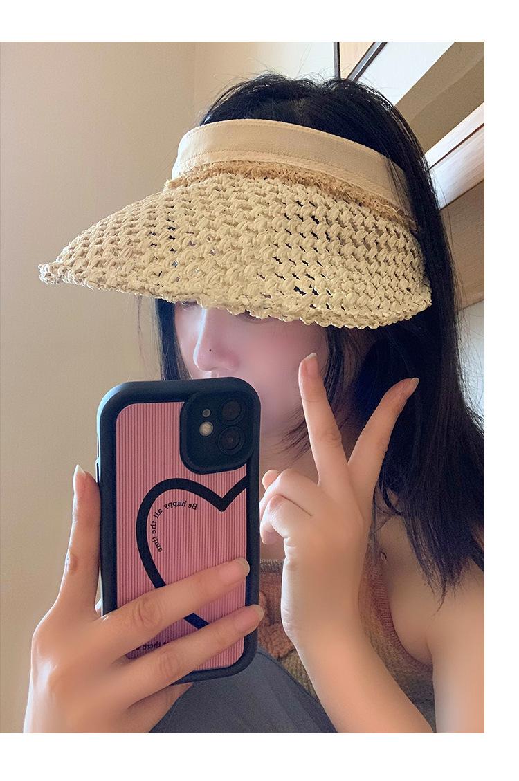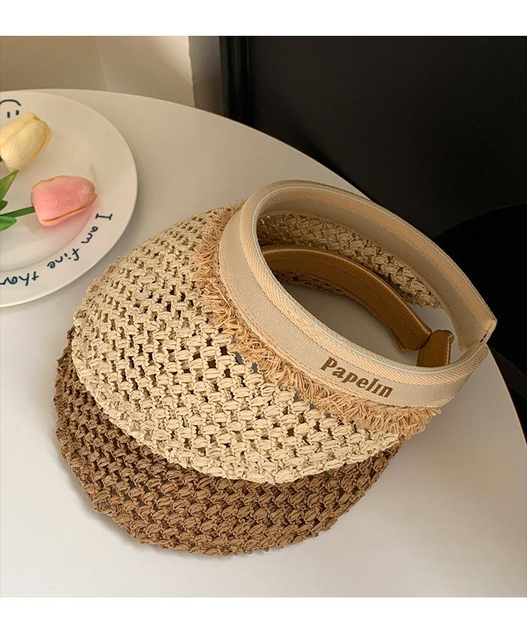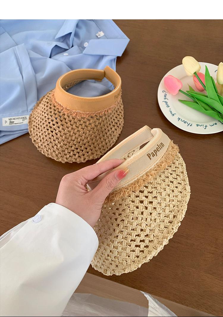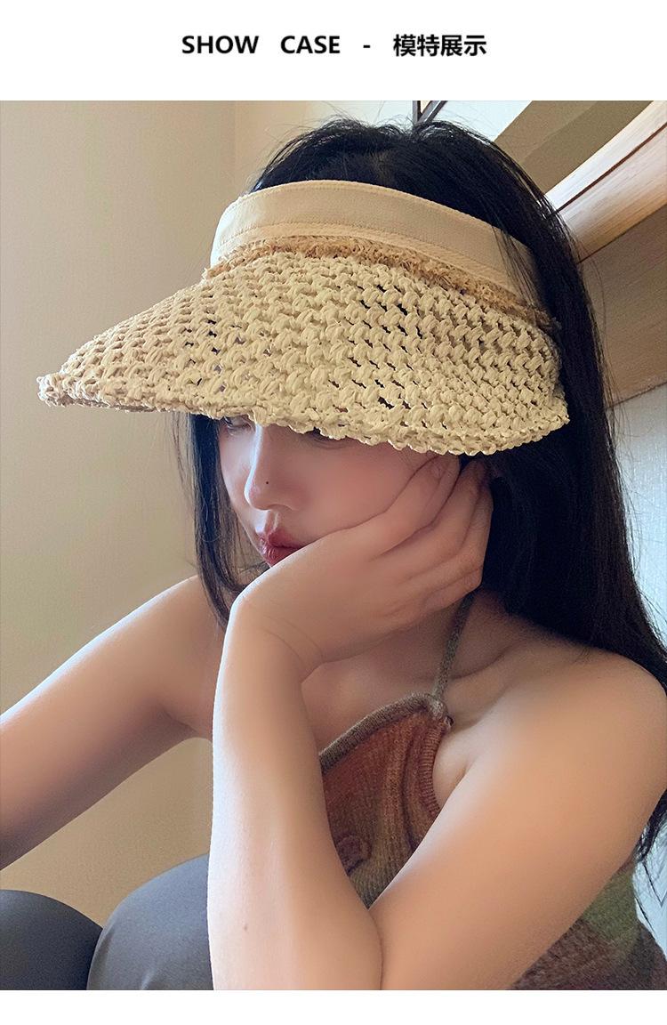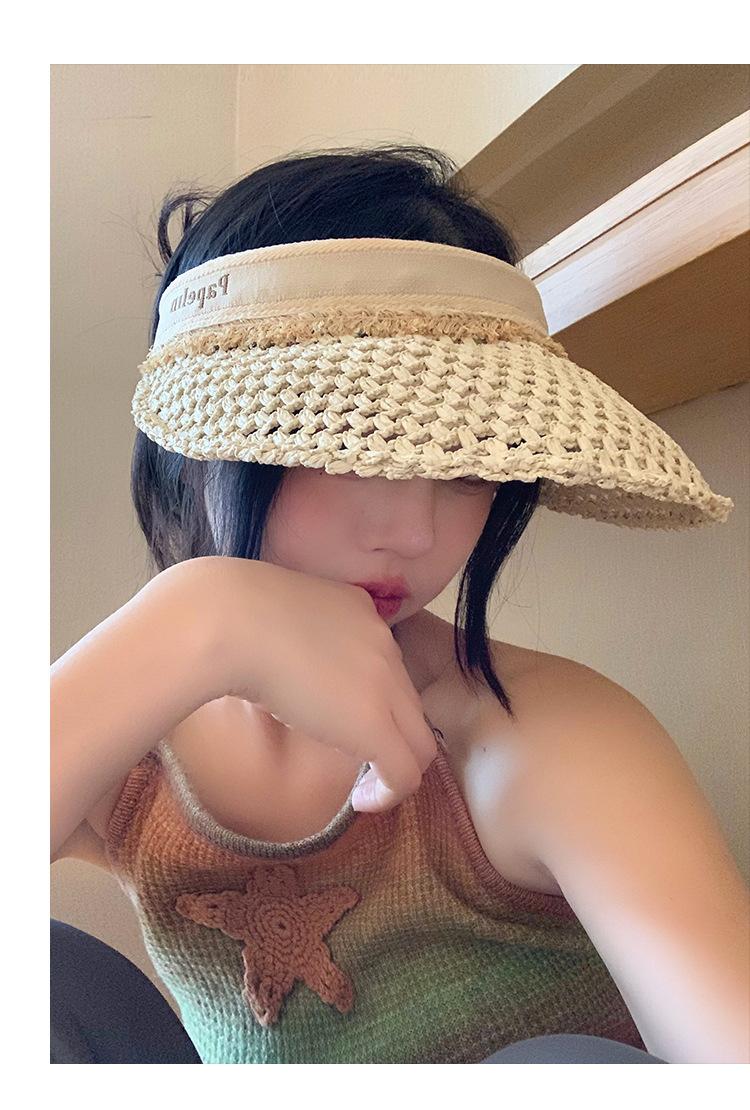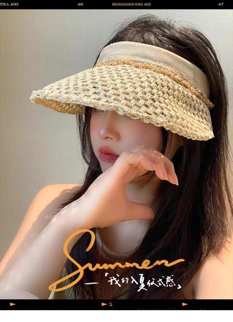 Sombrero de paja de verano para mujer 2024, nuevo estilo, con cara visible, pequeño, para playa, vacaciones, con parte superior vacía, protector solar.
