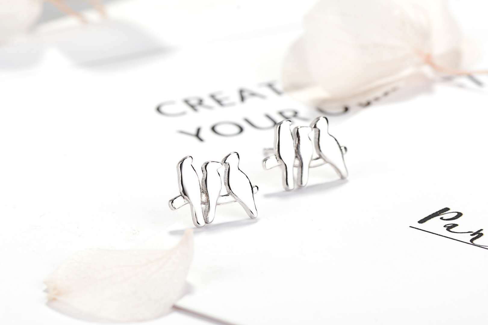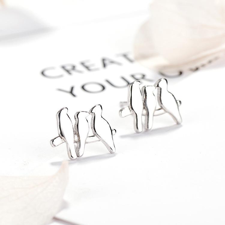 Pendientes de plata S925 con forma de tres pájaros para mujer, elegantes, sencillos, coreanos, para primavera y verano, 2020