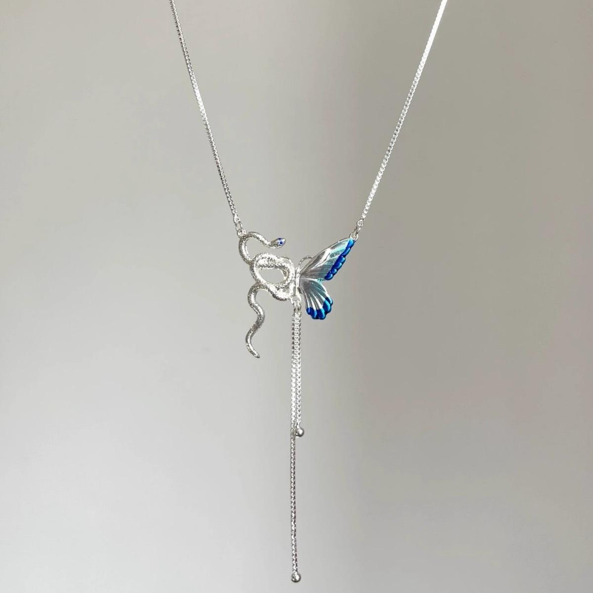 Collar de serpiente y mariposa azul, diseño de nicho, temperamento único, combinable, nuevo 2024, cadena de clavícula.