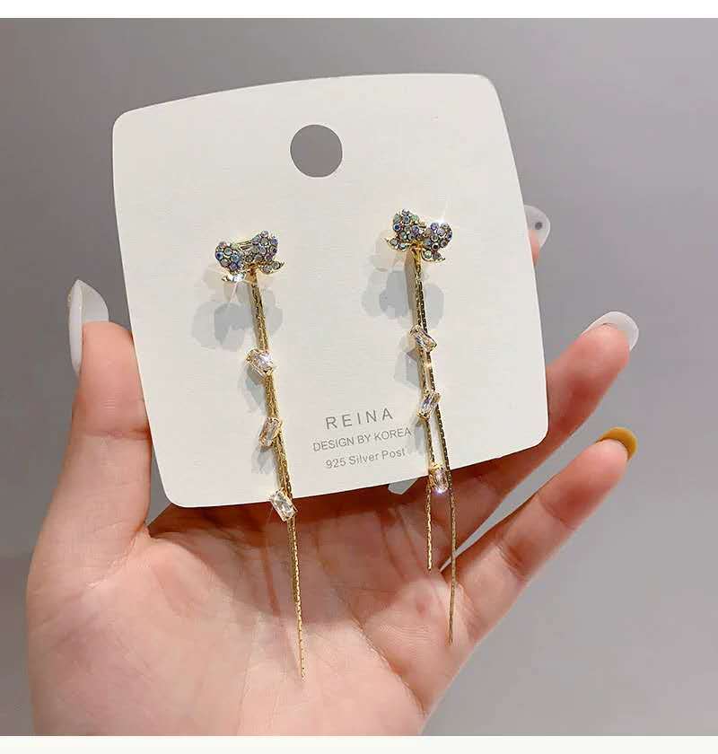 | Pendientes de cristal de pavo real 2021, nuevos y modernos, con borlas de celebridades de internet, pendientes largos con temperamento para mujer. | |