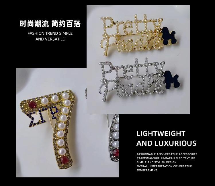 Broche de perla estilo coreano con letras en inglés, elegante broche de aleación con diamantes, elegante broche de ramillete, accesorios de joyería, broche con hebilla.