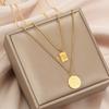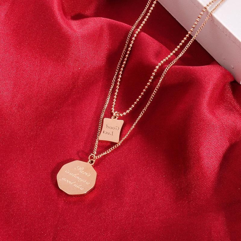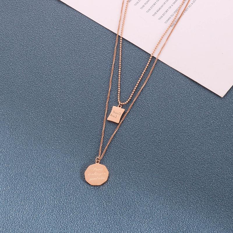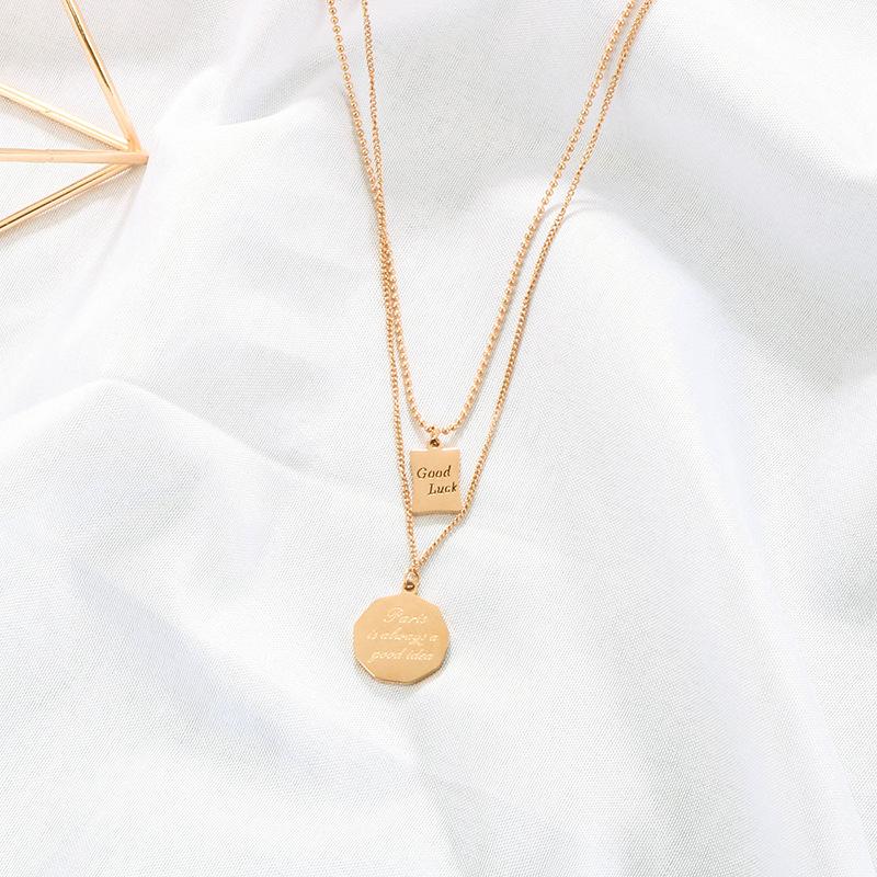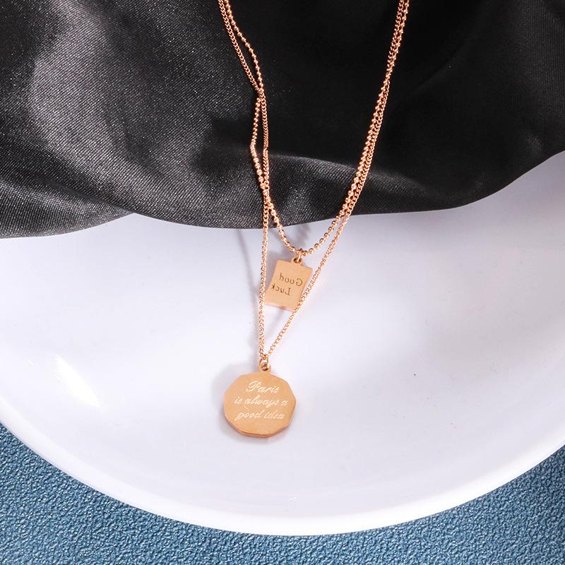 Collar con letra de la suerte de acero de titanio de doble capa, cadena de clavícula femenina, diseño de nicho, estilo frío, collar de temperamento simple.