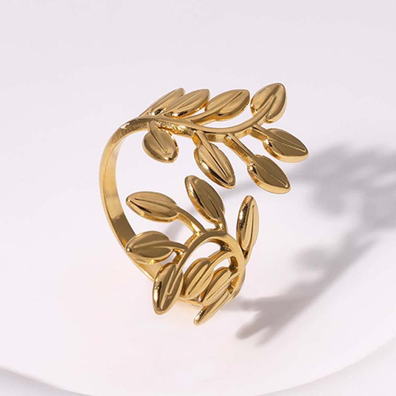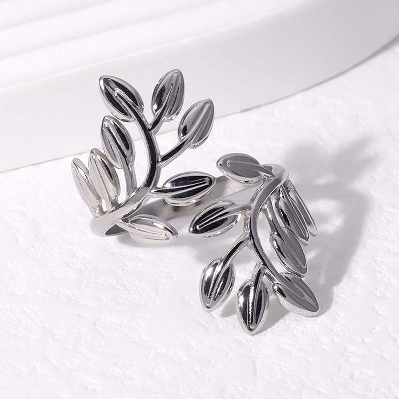 Anillo Europeo y Americano Personalizado Exagerado de Hoja de Acero Titanio Abierto que No se Desvanece Anillo para Dedo Índice de Alta Gama Anillo de Acero Inoxidable al por Mayor