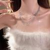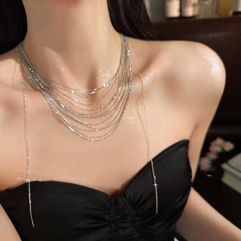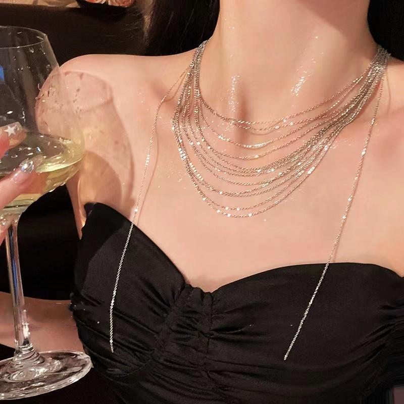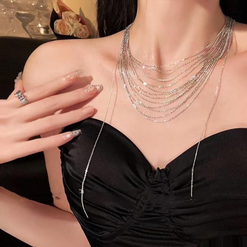 Collar de cadena con borlas apiladas multicapa brillante para mujer, ligero, de lujo, elegante, de moda, de alta gama, nuevo y de moda.