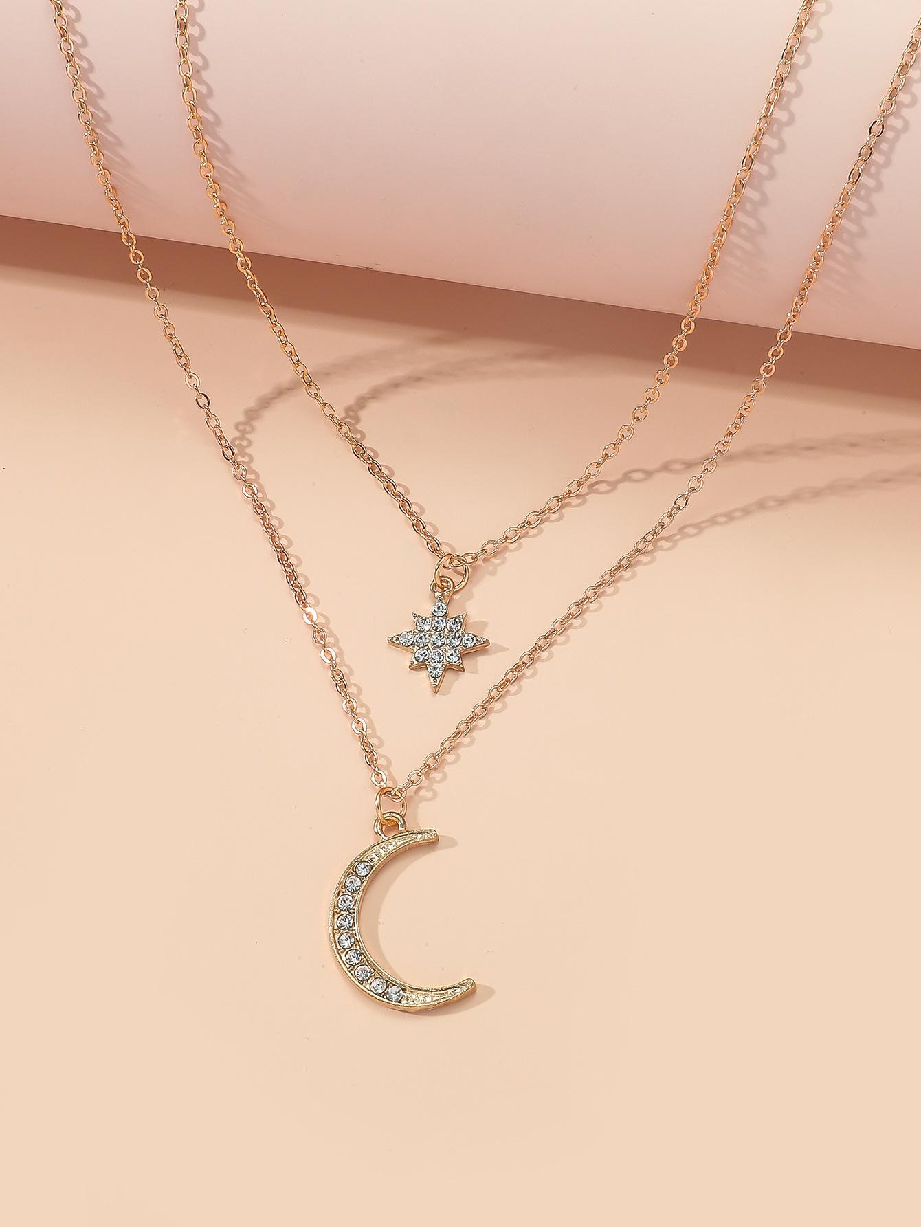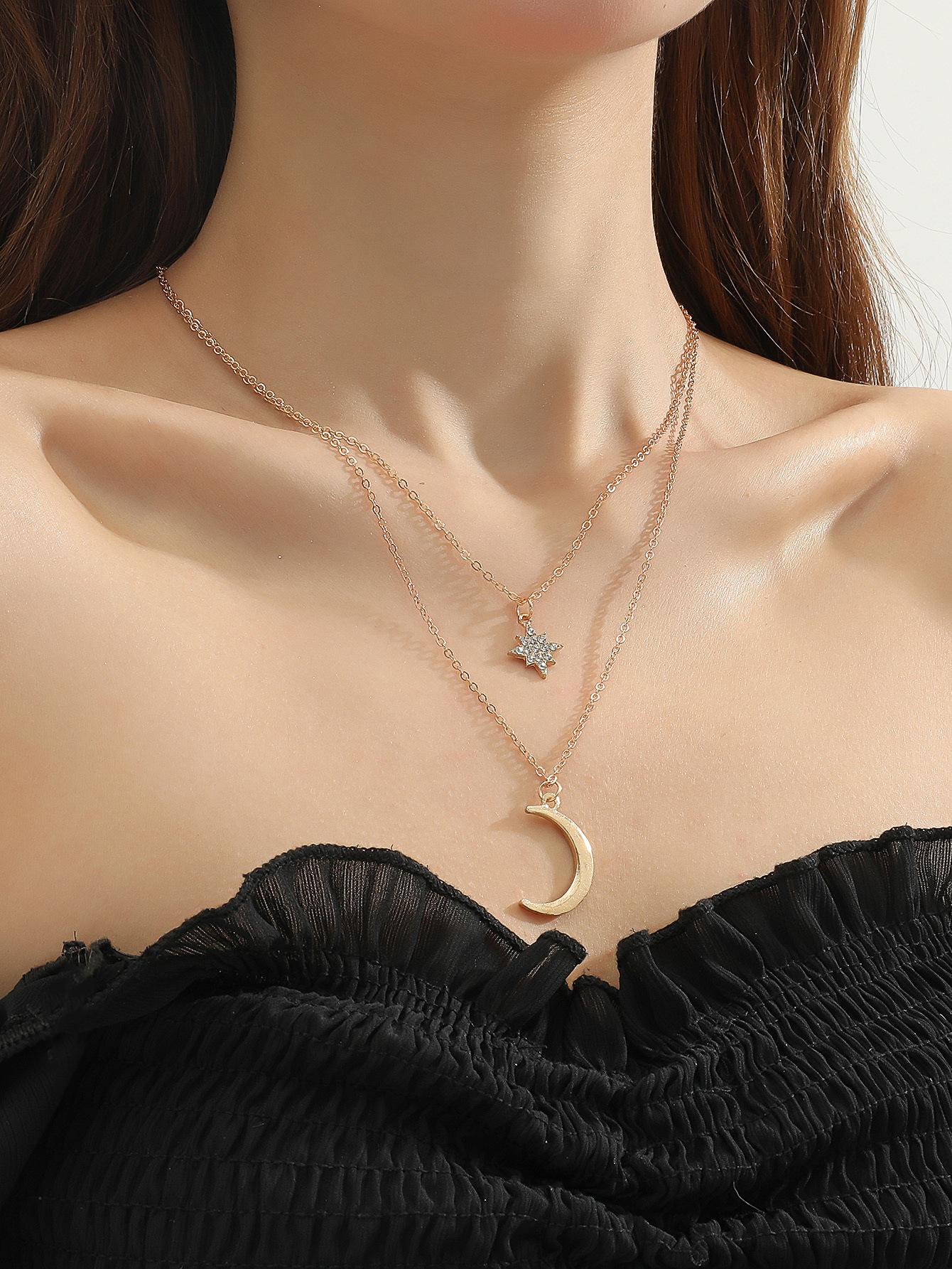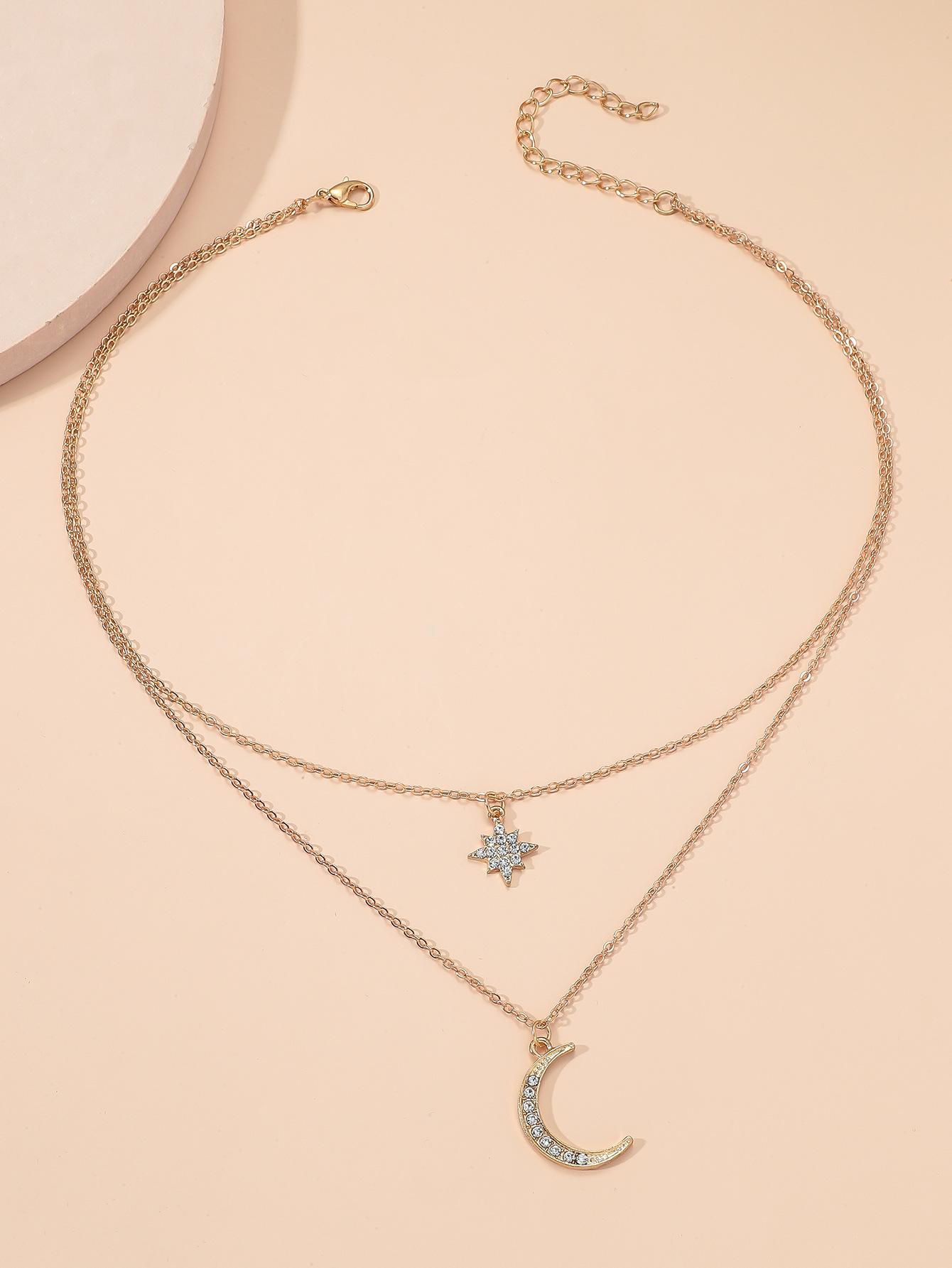 Nuevo collar transfronterizo europeo y americano de moda elegante colgante de luna de copo de nieve con incrustaciones de circonitas cadena de mujer que combina con todo