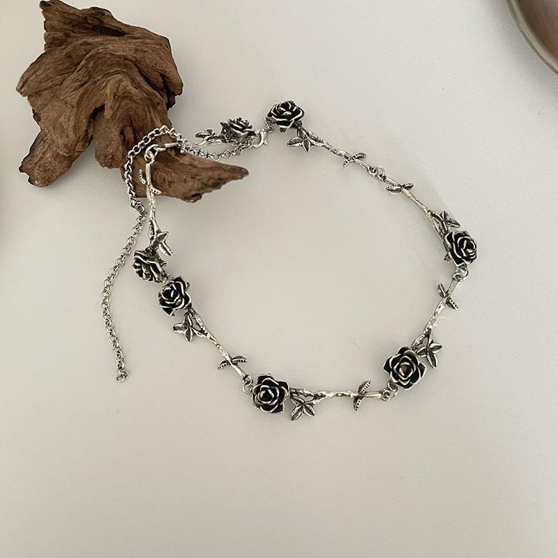 Accesorios Retro Franceses Collar de Rosa Camelia Negra Diseño Nicho Ins Cadena Clavícula para Mujer Collar Colgante