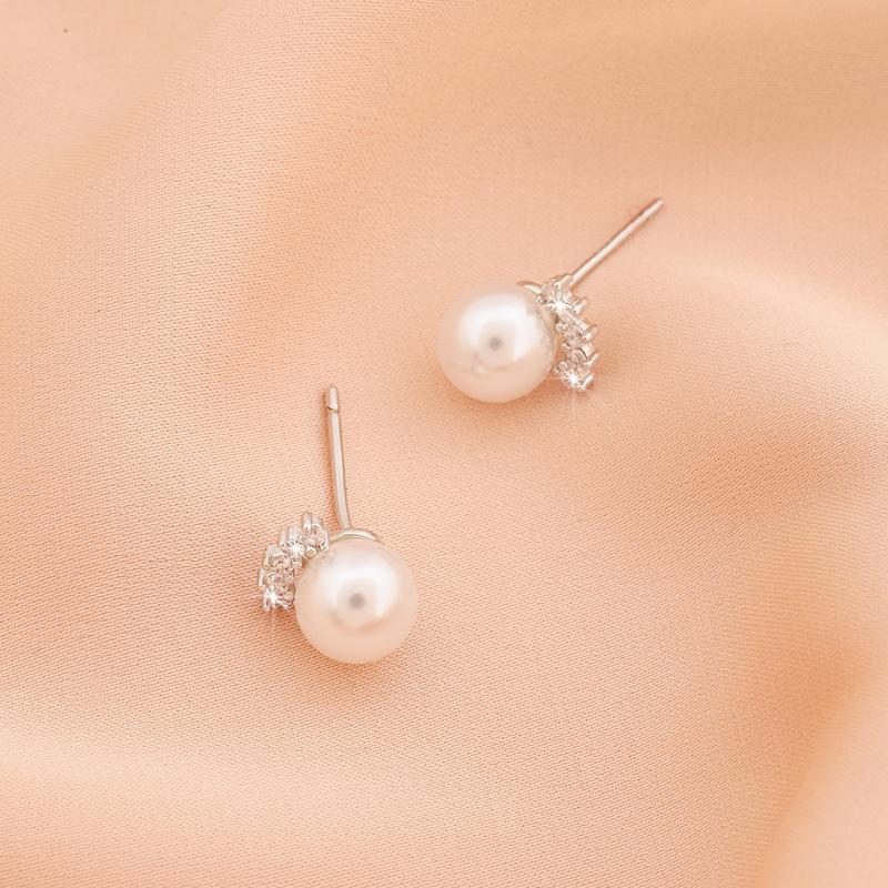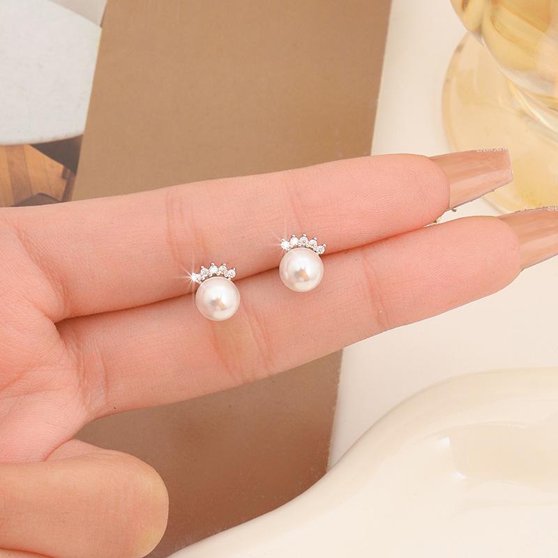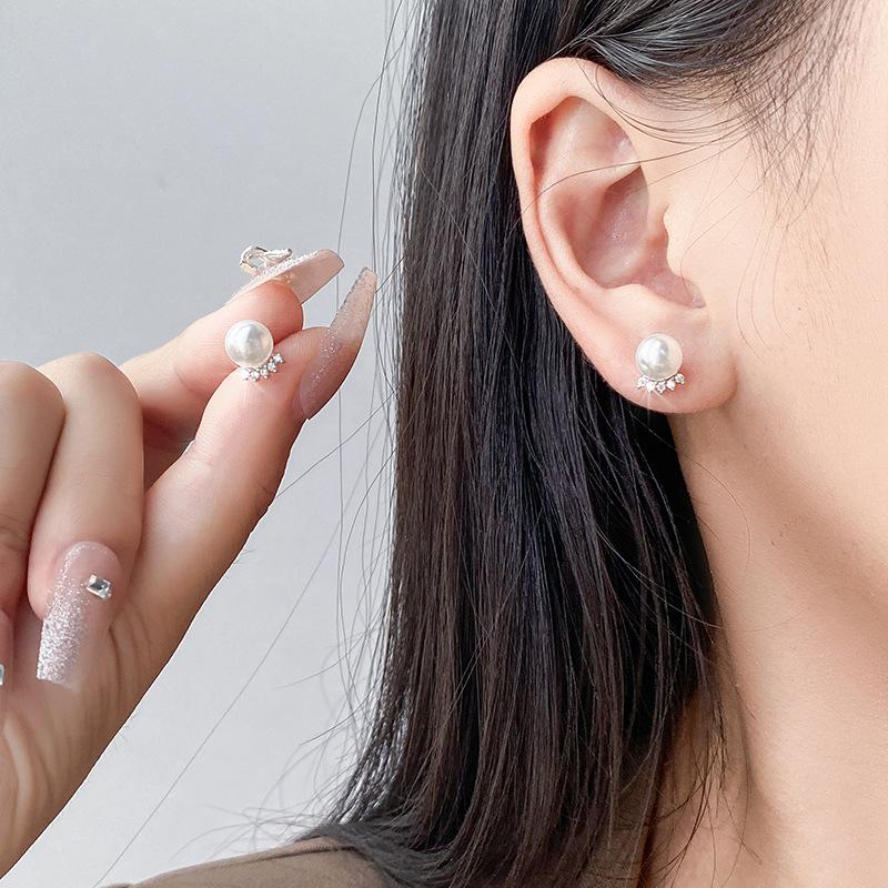 Aretes Simples de Perlas, Aretes de Temperamento, Exquisita Moda Francesa, Agujas de Plata Retro para el Trabajo, Aretes de Lujo Ligero para Mujer al Mayoreo
