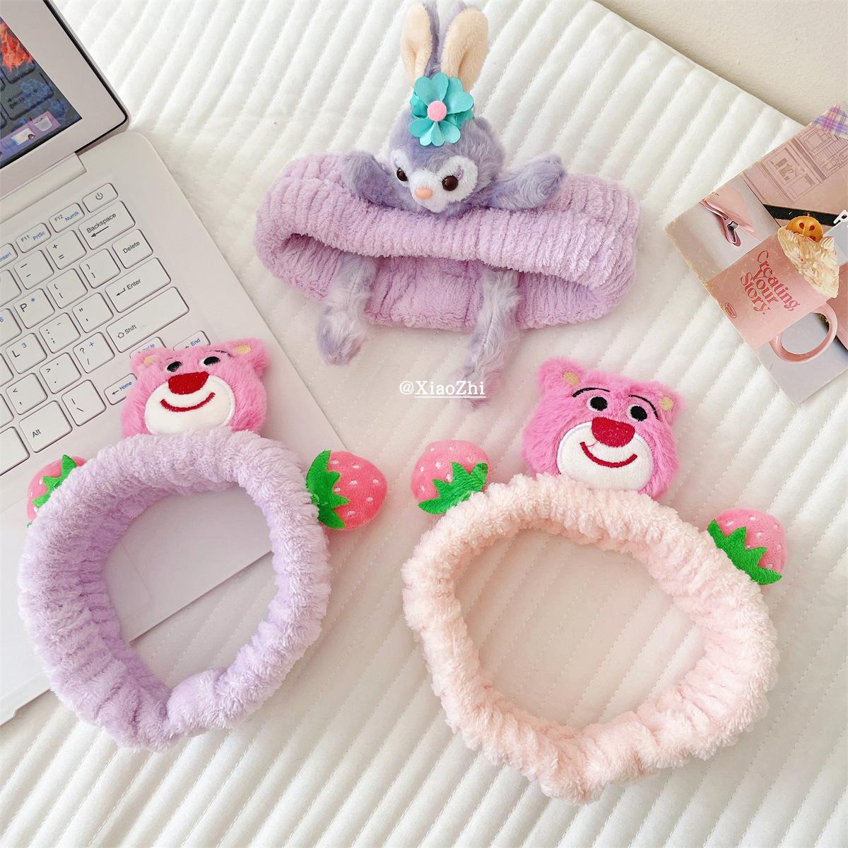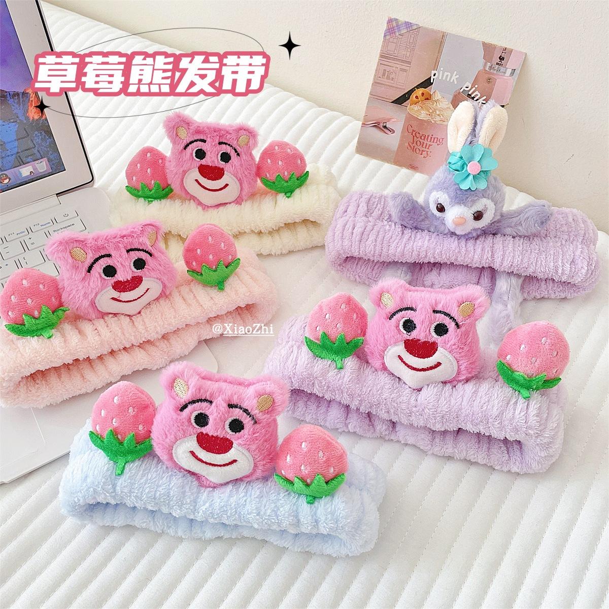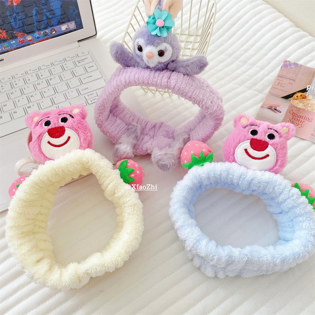 Otoño e invierno nuevo oso de fresa lavado de cara banda para el cabello banda para el cabello linda estrella de peluche Delu máscara facial pinza para el cabello diadema tocado