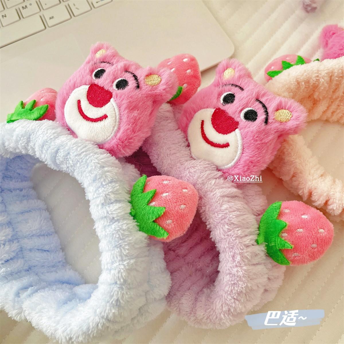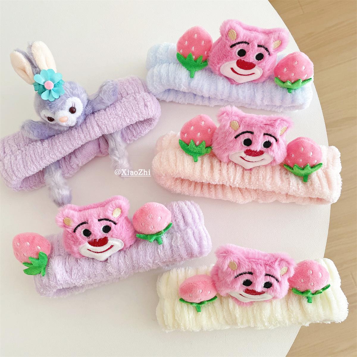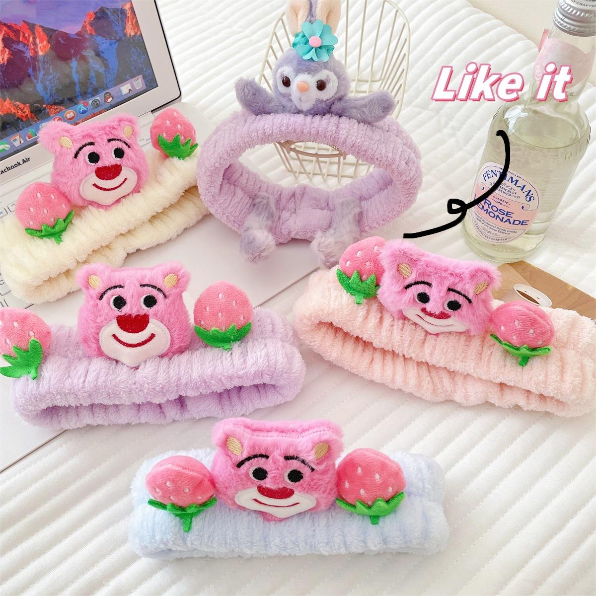 Otoño e invierno nuevo oso de fresa lavado de cara banda para el cabello banda para el cabello linda estrella de peluche Delu máscara facial pinza para el cabello diadema tocado
